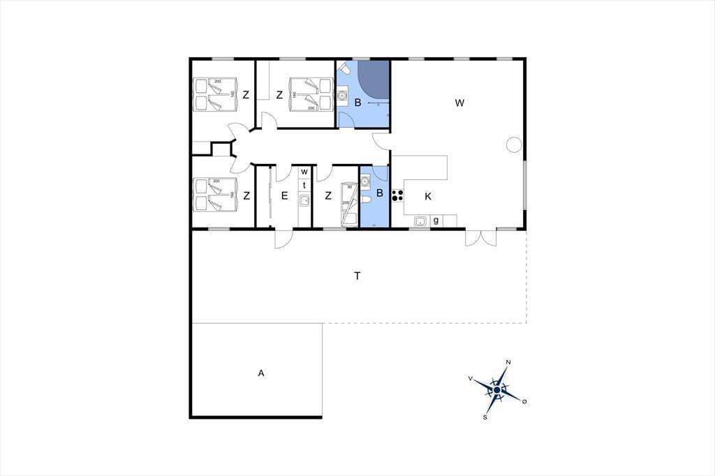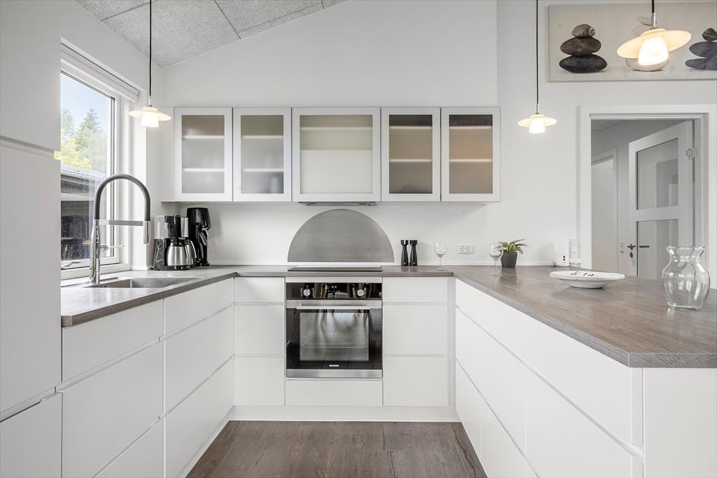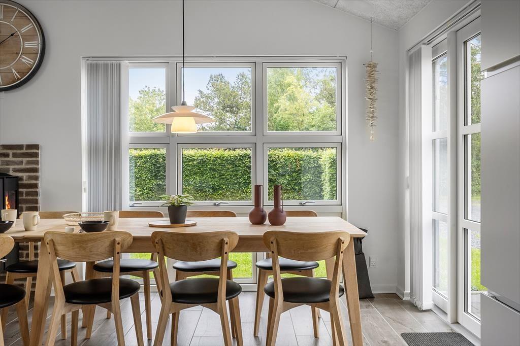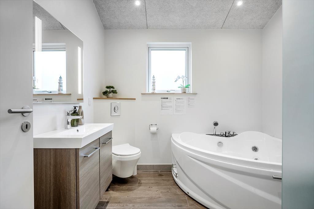 Sommerhuset imponerer med sin lyse og åbne planløsning, hvor det moderne køkken ligger i åben forbindelse med stue og spisestue. Det skaber en social og indbydende atmosfære, som er ideel til samvær med familie og venner. I stuen står en hyggelig brændeovn klar til at sprede varme og hygge på kølige aftener, mens gulvvarmen i hele huset sikrer en behagelig temperatur året rundt. Huset rummer fire gode soveværelser – herunder et med køjeseng, som er populært blandt børnene. To flotte badeværelser giver ekstra komfort, hvor det ene er udstyret med et dejligt spabad, der inviterer til afslapning efter en aktiv dag ved stranden eller i området.