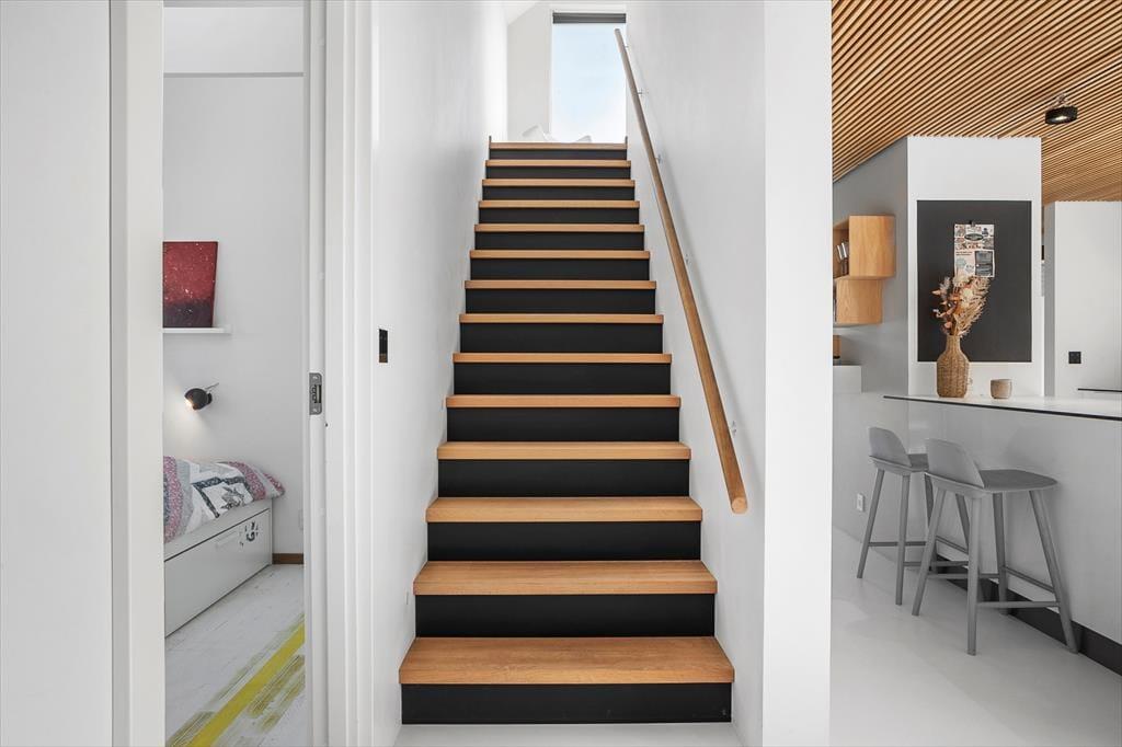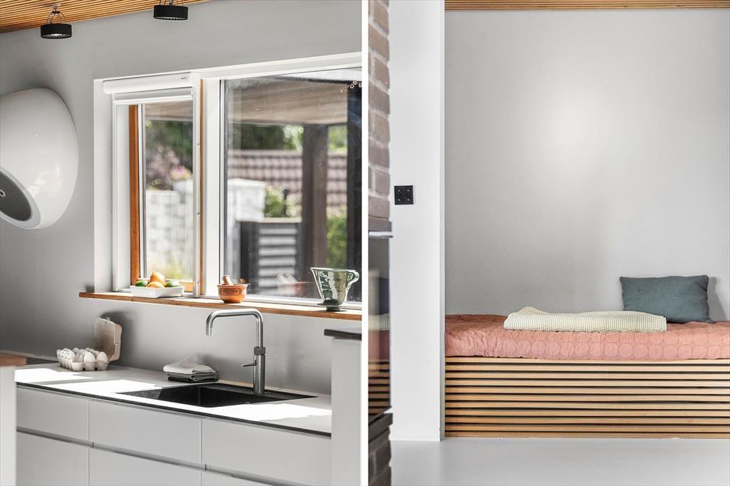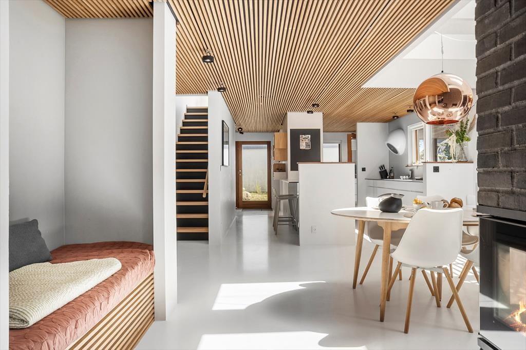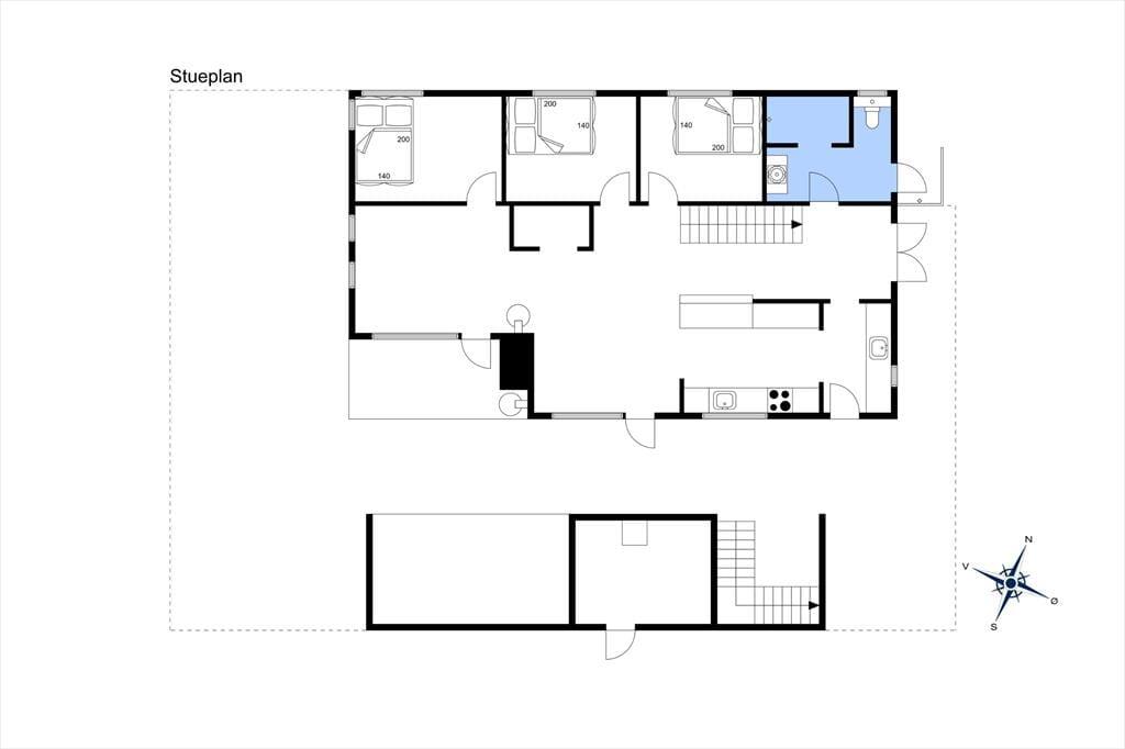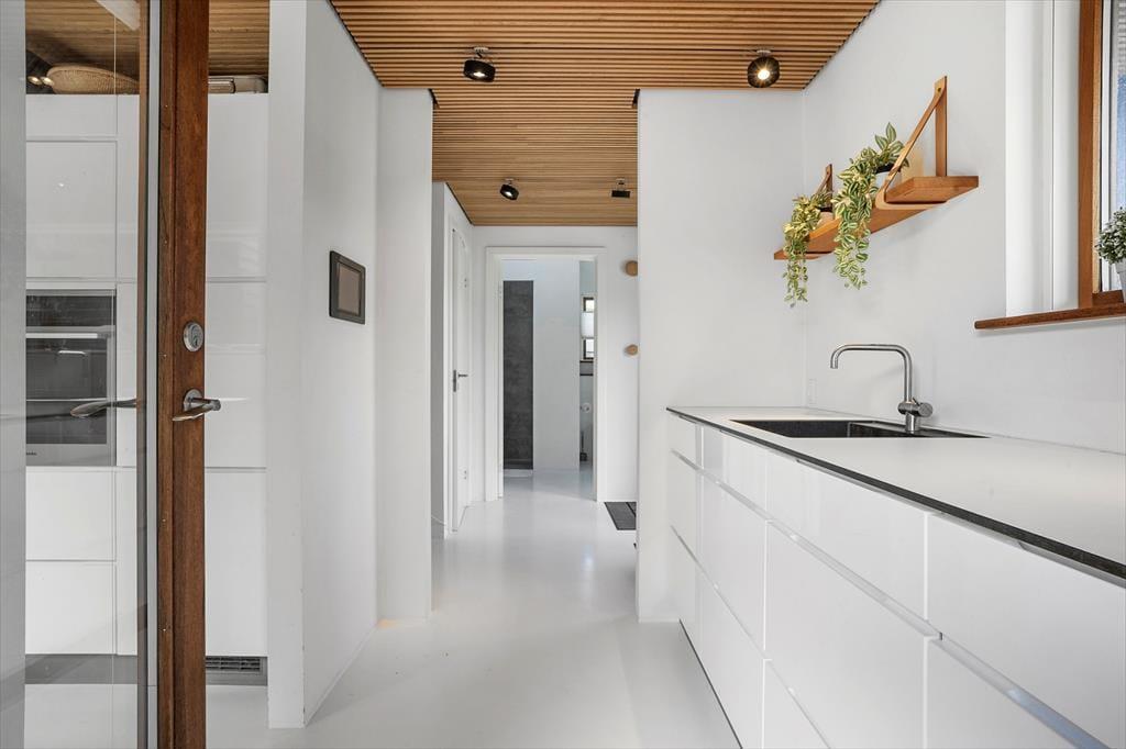 Sommerhuset byder på en lys og moderne indretning med gulvvarme i hele huset, så komforten er i top året rundt. Det veludstyrede køkken er husets naturlige samlingspunkt og indeholder alt, hvad du har brug for – inklusive praktiske faciliteter som airfryer og Quooker, der gør madlavningen nem og fleksibel. Stuen i forlængelse af køkkenet skaber en hyggelig atmosfære med brændeovn, perfekt til afslapning efter en dag på stranden. På førstesalen finder du endnu en stue med masser af lys, som giver mulighed for, at hele familien kan sprede sig, men stadig være samlet. Fire gode soveværelser og to badeværelser giver rigelig plads til alle, og det er tydeligt, at huset er indrettet med fokus på både funktionalitet og velvære.