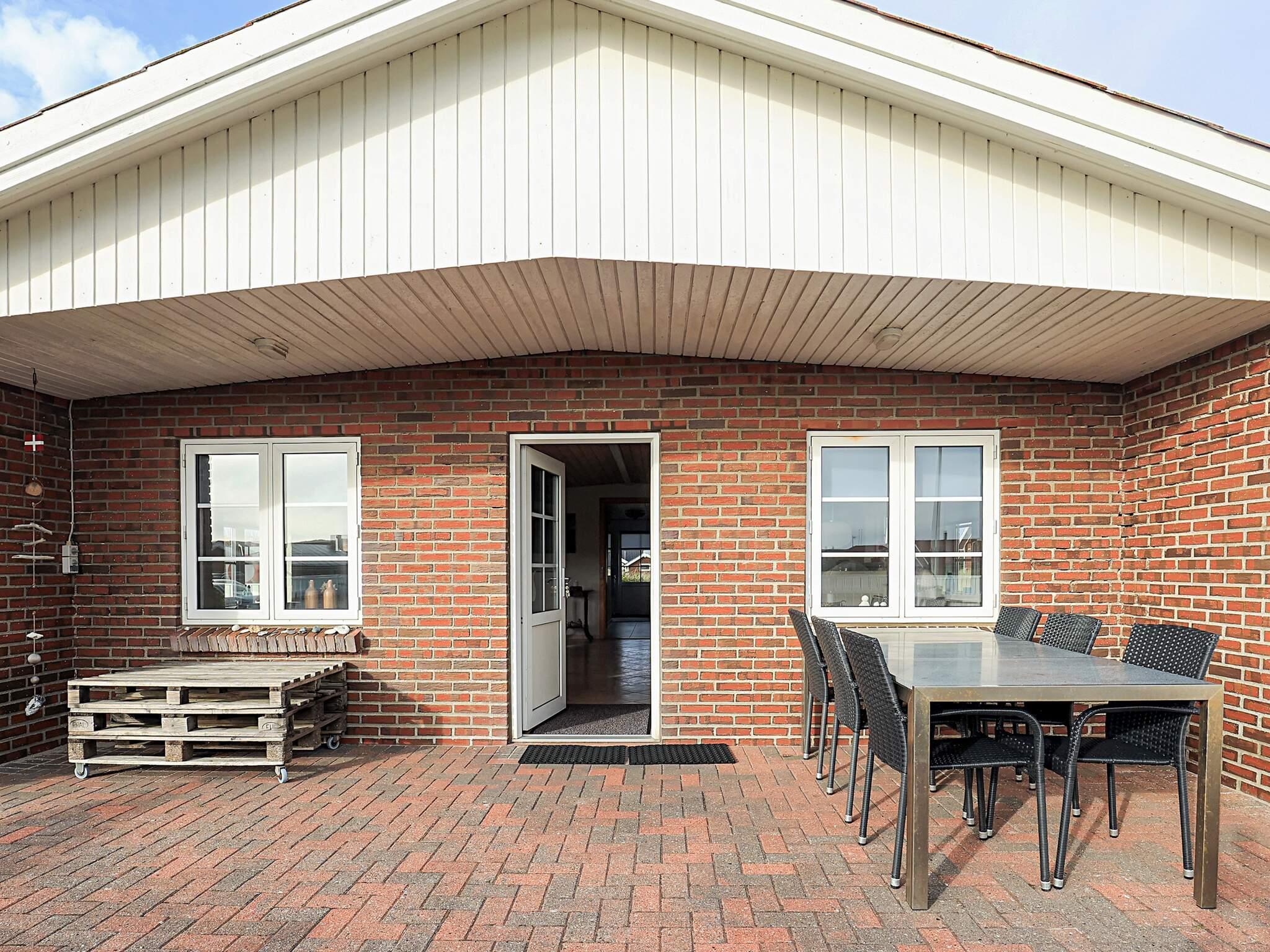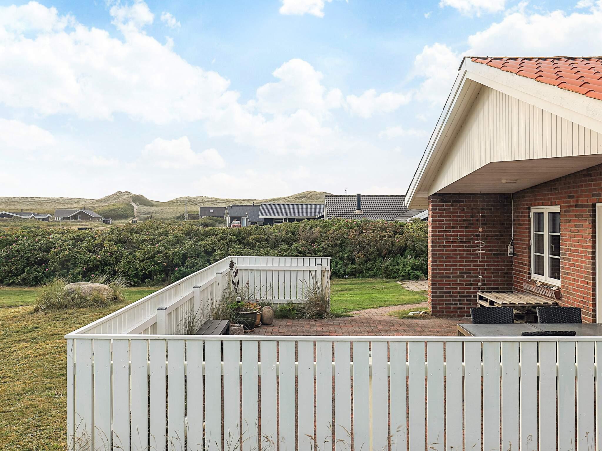 Udendørs findes to terrasser med havemøbler, hvoraf den ene er delvist overdækket. Her kan aftensmaden nydes mens solen går ned over Vesterhavet. Desuden findes der udebruser med varmt vand i sommerhalvåret.