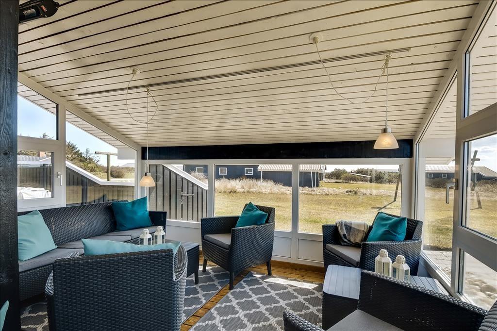 Sommerhusets terrasseområder er skabt til at nyde livet i det fri. Her kan du drikke morgenkaffen under åben himmel eller læne dig tilbage med en god bog i eftermiddagssolen. På den lukkede terrasse kan børn og hunde lege trygt, mens du griller aftensmaden og lytter til bruset fra Vesterhavet i baggrunden. Den rummelige have giver også mulighed for boldspil og leg for hele familien. Og når solen går ned, kan du nyde roen i det naturskønne sommerhusområde, der omgiver dig.
