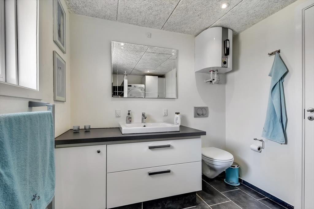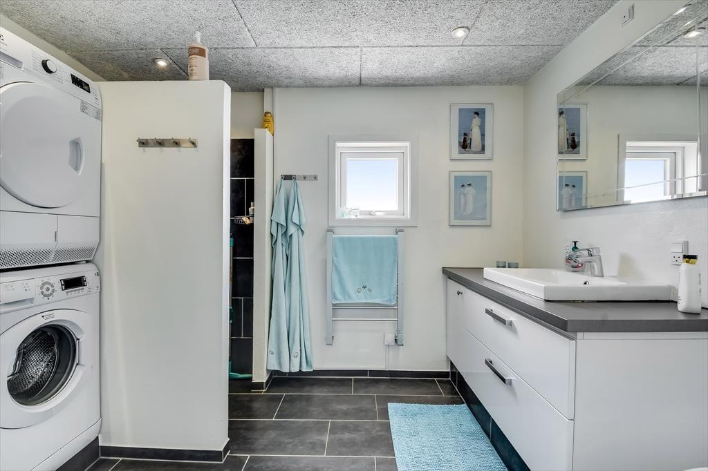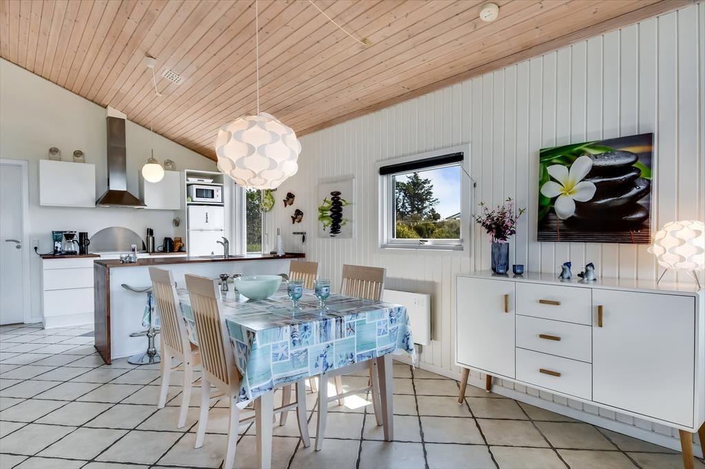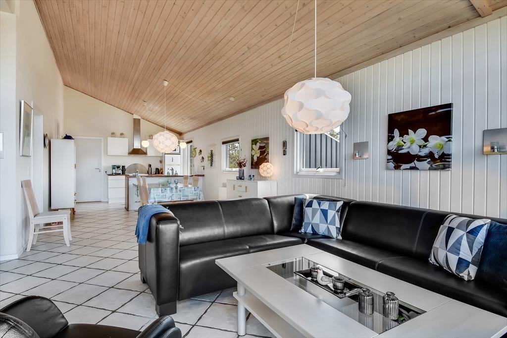 Når du træder ind i sommerhuset, mødes du af en rummelig stue med komfortable møbler og en knitrende brændeovn, der skaber en varm og hyggelig stemning på kølige aftener. Det åbne køkken gør det nemt at tilberede lækre feriemåltider, som kan nydes sammen med familien omkring spisebordet. De tre soveværelser er indrettet med behagelige senge, der sikrer en god nats søvn efter en dag fuld af oplevelser. Badeværelset er lyst og har gulvvarme, så du kan starte dagen med en behagelig temperatur under fødderne.