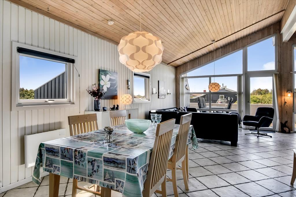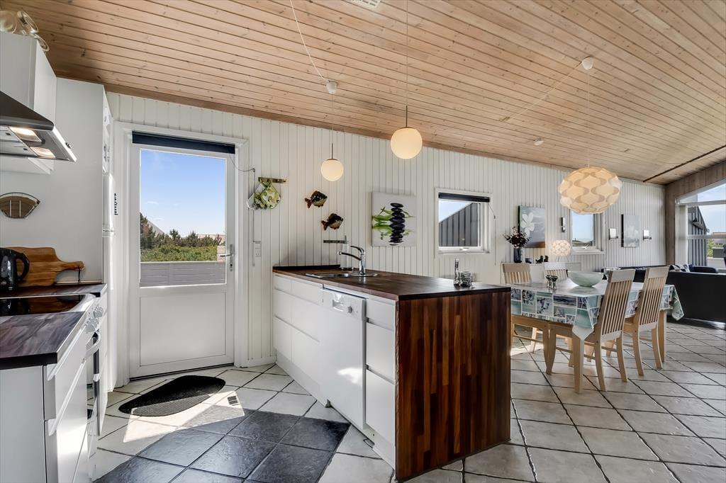 Sommerhuset er omgivet af en stor naturgrund, hvor børnene kan lege frit, og boltre sig. Den delvist overdækkede terrasse er udstyret med havemøbler og liggestole, perfekt til afslapning med en god bog eller en kop kaffe i solen. Om aftenen kan I samles omkring grillen og tilberede et lækkert måltid, mens solen går ned over klitterne. For de yngste gæster er der en gynge, hvor de kan få timer til at gå med leg og latter.