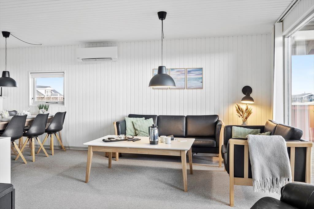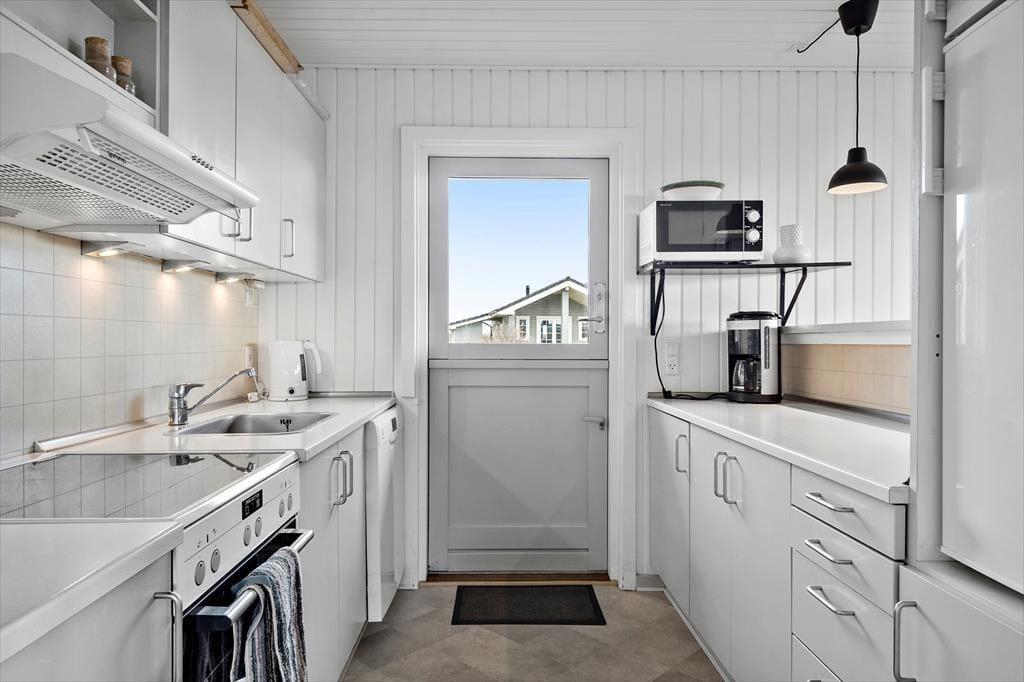 Når du træder ind i sommerhuset, mødes du af et åbent køkken-alrum, hvor køkkenet smelter sammen med den hyggelige stue. Her kan du tilberede lækre måltider, mens familien samles omkring brændeovnen, der spreder varme og skaber en behagelig stemning på kølige aftener. Efter en dag ved stranden kan du forkæle dig selv med en tur i husets sauna, hvor du kan lade varmen løsne op for spændinger og give fornyet energi.