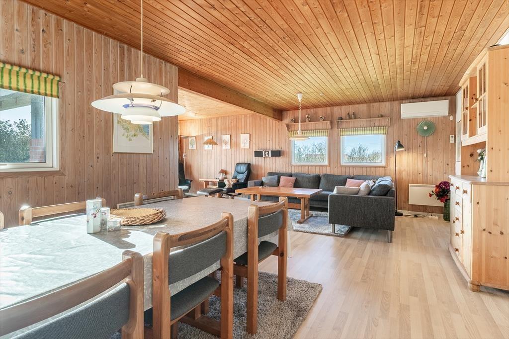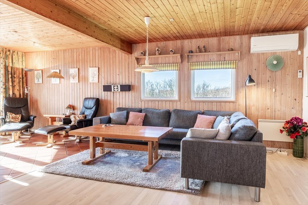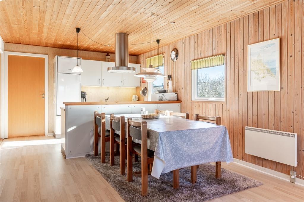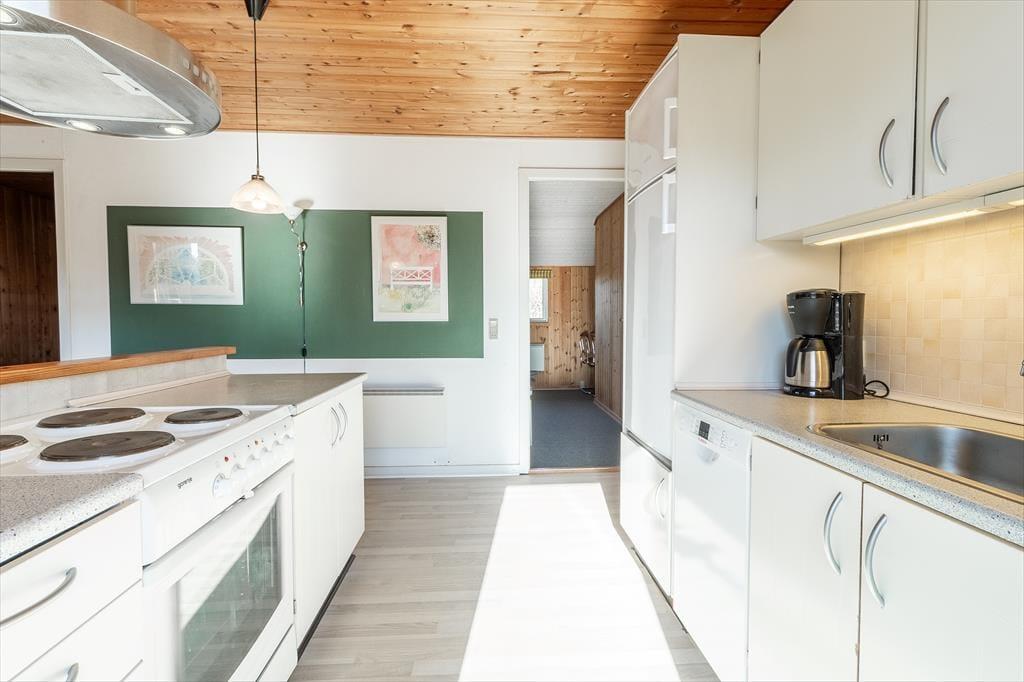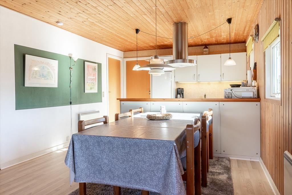 Når du træder ind i dette hyggelige sommerhus, mødes du af en indbydende atmosfære. Stuen er udstyret med en brændeovn, der skaber en varm og behagelig stemning på kølige aftener. Det åbne køkken er praktisk integreret med stuen, hvilket gør det nemt at tilberede måltider, mens du stadig er en del af fællesskabet. Huset rummer fire komfortable soveværelser, der sikrer en god nats søvn efter en dag fuld af oplevelser. Badeværelset er lyst og funktionelt med gulvvarme, der giver ekstra komfort.