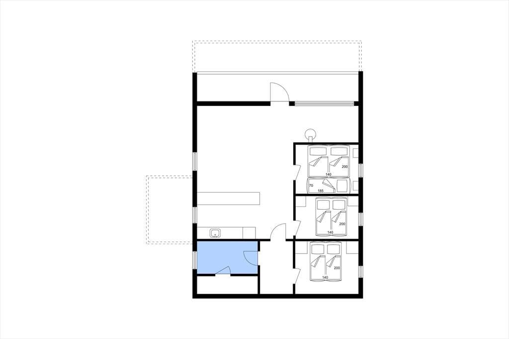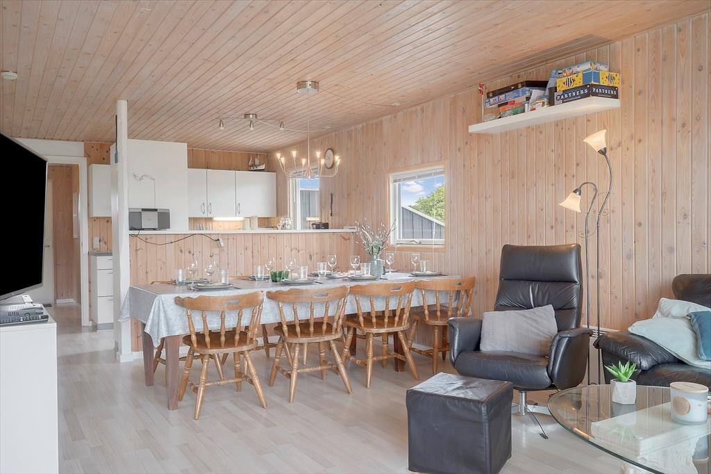 Når du træder ind i sommerhuset, møder du en behagelig og afslappet atmosfære. Huset er indrettet med tre soveværelser, der er lyse og komfortable, og som giver god plads til afslapning efter en dag fuld af oplevelser. Køkkenet og stuen er samlet i et hyggeligt alrum, hvor familien kan samles til fælles madlavning, brætspil eller en god film foran brændeovnen. Den varme glød fra brændeovnen gør selv kølige aftener hyggelige, mens den funktionelle indretning sikrer, at du har alt, hvad du behøver for at nyde ferien.