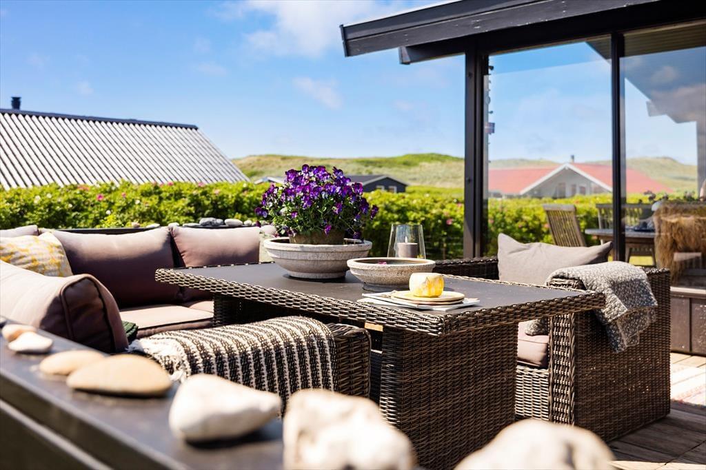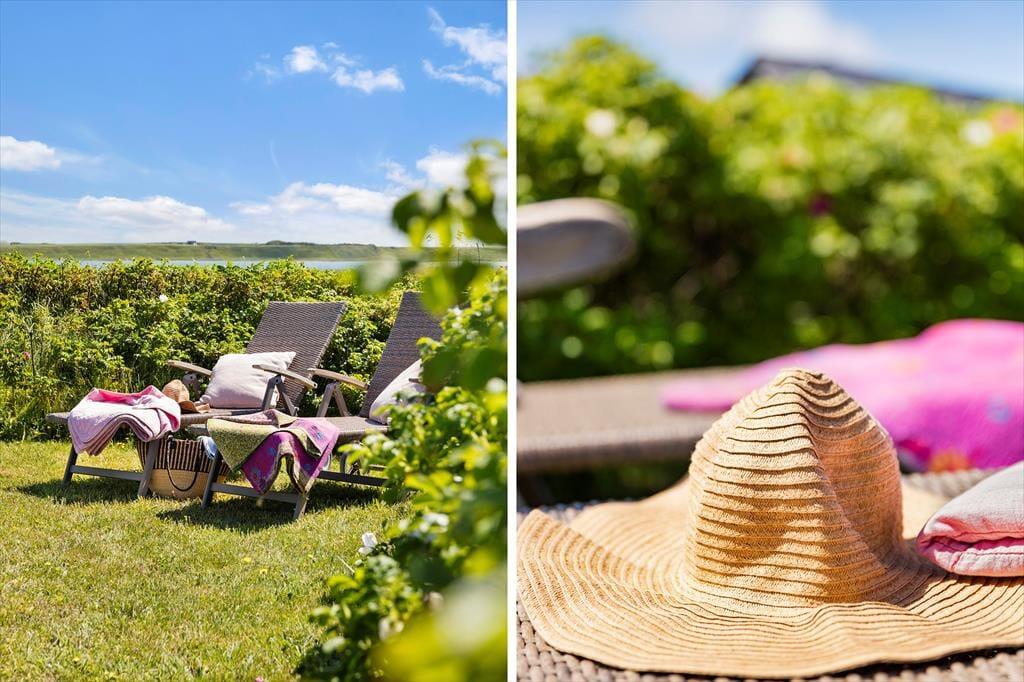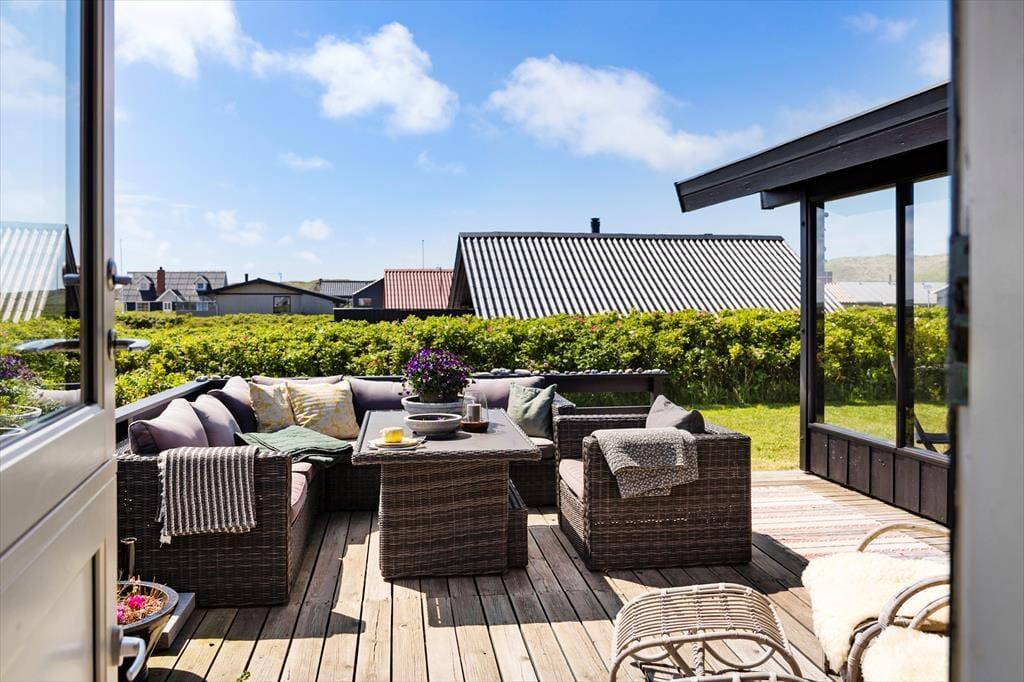 Udelivet får optimale betingelser i dette sommerhus, hvor I kan slappe af på den hyggelige, sydvendte terrasse. Her kan morgenkaffen nydes i solen, mens I lytter til naturens rolige lyde. Haven er dejlig privat og afskærmet af en hæk, så I kan nyde sommerdagene uforstyrret. Hvis I har hund med på ferie, er der tænkt på dens trivsel – halvdelen af haven er indhegnet, så den trygt kan løbe rundt og lege. Efter en lang dag ved havet eller på udflugter er det oplagt at tænde grillen og nyde aftensmaden i det fri, mens solen langsomt går ned over landskabet.