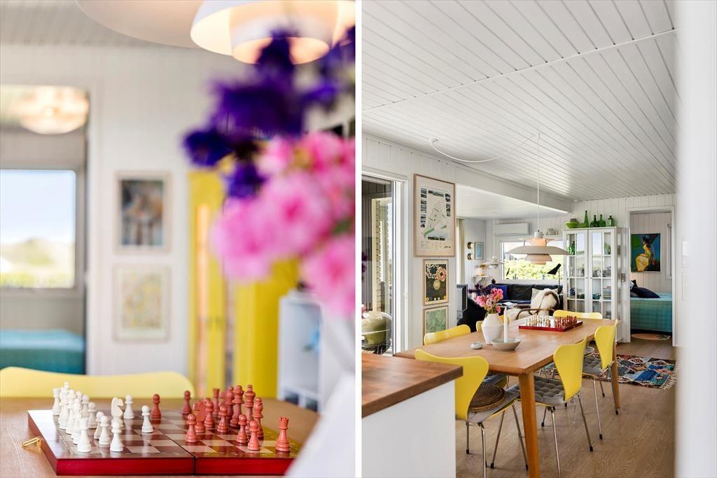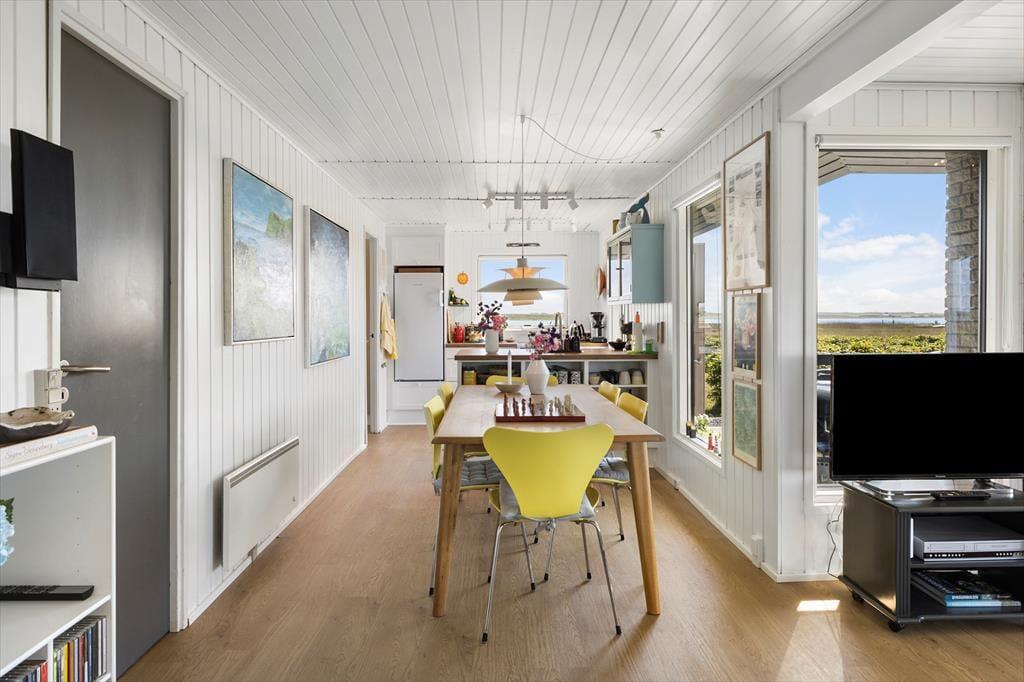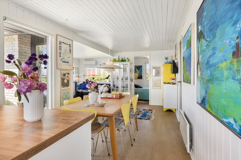 Efter en omfattende modernisering i 2024 fremstår sommerhuset lyst, indbydende og med en stilfuld indretning. Her kan du nyde et helt nyt køkken, hvor madlavningen bliver en fornøjelse, samt komfortable møbler og senge, der sikrer en god nats søvn efter en dag med strandture og oplevelser. Den åbne planløsning mellem stue og køkken skaber et naturligt samlingspunkt, hvor I kan hygge jer med brætspil, gode samtaler eller en film på fjernsynet. Store vinduespartier lader lyset strømme ind og giver jer en smuk panoramaudsigt over søen, hvilket tilfører ekstra ro og feriestemning til jeres ophold.