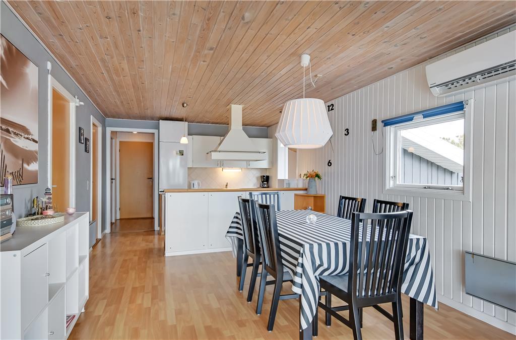 Sommerhuset emmer af hygge og god atmosfære, allerede fra du træder indenfor. De lyse rum og den enkle, velvalgte indretning skaber en afslappet stemning, hvor ferien rigtig kan begynde. Hjerterummet er den åbne opholdsafdeling, hvor køkken og stue glider naturligt sammen og gør det oplagt at samles om måltiderne, en god film i sofaen eller en varm kop te efter en blæsende tur ved stranden. Store vinduer lukker lys og natur ind, og i de rolige omgivelser er det let at finde ind til roen. Når kroppen skal forkæles lidt ekstra, kan du glæde dig til både spa og sauna – en luksus, der især gør underværker efter en dag i naturen. Huset har god plads, og både familier og vennepar vil føle sig godt tilpas her.