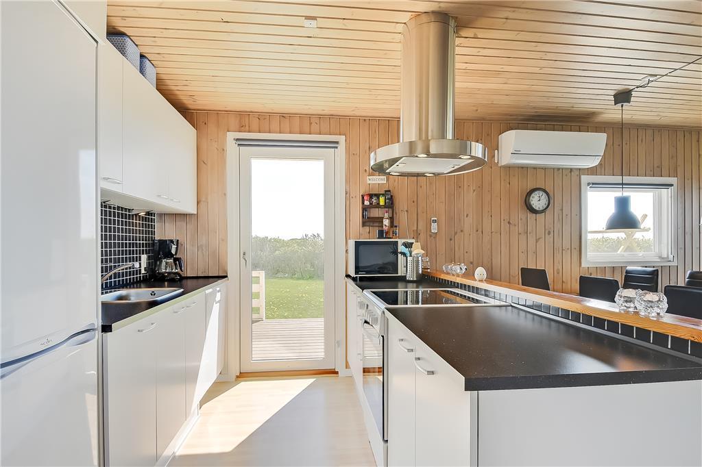 Udendørs venter en rummelig terrasse, hvor du kan starte dagen med en kop dampende kaffe, mens morgensolen spejler sig i Ferring Søs rolige vande. Terrassen er udstyret med havemøbler og en grill, så du kan tilberede og nyde dine måltider under åben himmel. For de yngste gæster er der en sandkasse og et gyngestativ, hvor de kan lege og skabe ferieminder. Den store, åbne grund giver rig mulighed for boldspil, leg eller blot at læne sig tilbage og nyde den friske havluft.