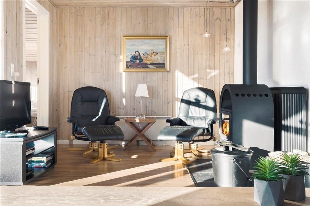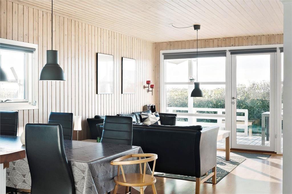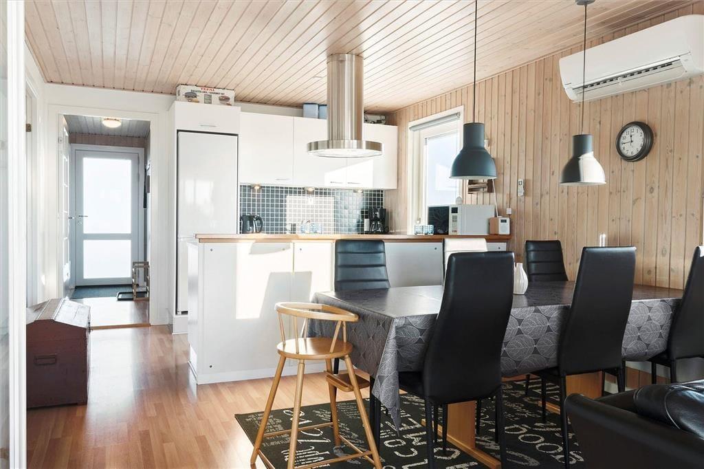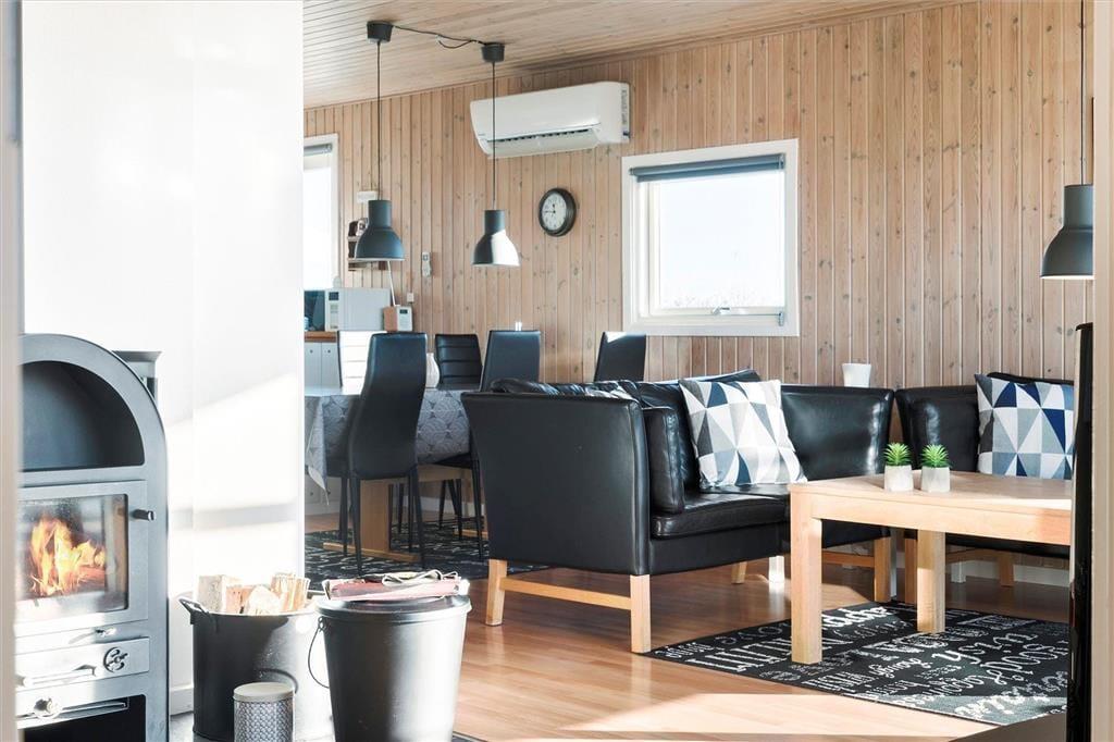 Når du træder ind i dette indbydende sommerhus, mødes du af en varm atmosfære, hvor store vinduespartier lader dagslyset strømme ind og giver dig mulighed for at beundre den storslåede udsigt over Ferring Sø. Den åbne planløsning mellem køkken og stue skaber et naturligt samlingspunkt for familien, hvor I kan tilberede lækre måltider sammen og efterfølgende slappe af foran brændeovnen, mens flammerne knitrer og spreder hygge. De komfortable møbler indbyder til afslapning, og den gennemførte indretning sikrer, at du straks føler dig hjemme.