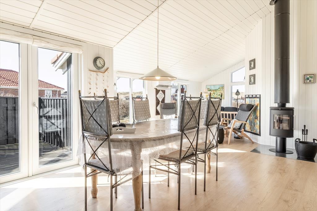 Med kun 200 meter til den dejlige sandstrand og det brusende Vesterhav er der rig mulighed for lange gåture og frisk havluft. Supermarkedet og en hyggelig restaurant, der tilbyder grillaftener om sommeren, ligger blot 140 meter fra huset, hvilket gør det nemt at handle ind eller nyde et måltid ude. Området byder også på spændende attraktioner som Sea War Museum Jutland i Thyborøn, hvor du kan dykke ned i fascinerende fortællinger om dramatiske søslag, eller Bovbjerg Klint, der med sin imponerende højde og Bovbjerg Fyr på toppen tilbyder en spektakulær udsigt over landskabet.