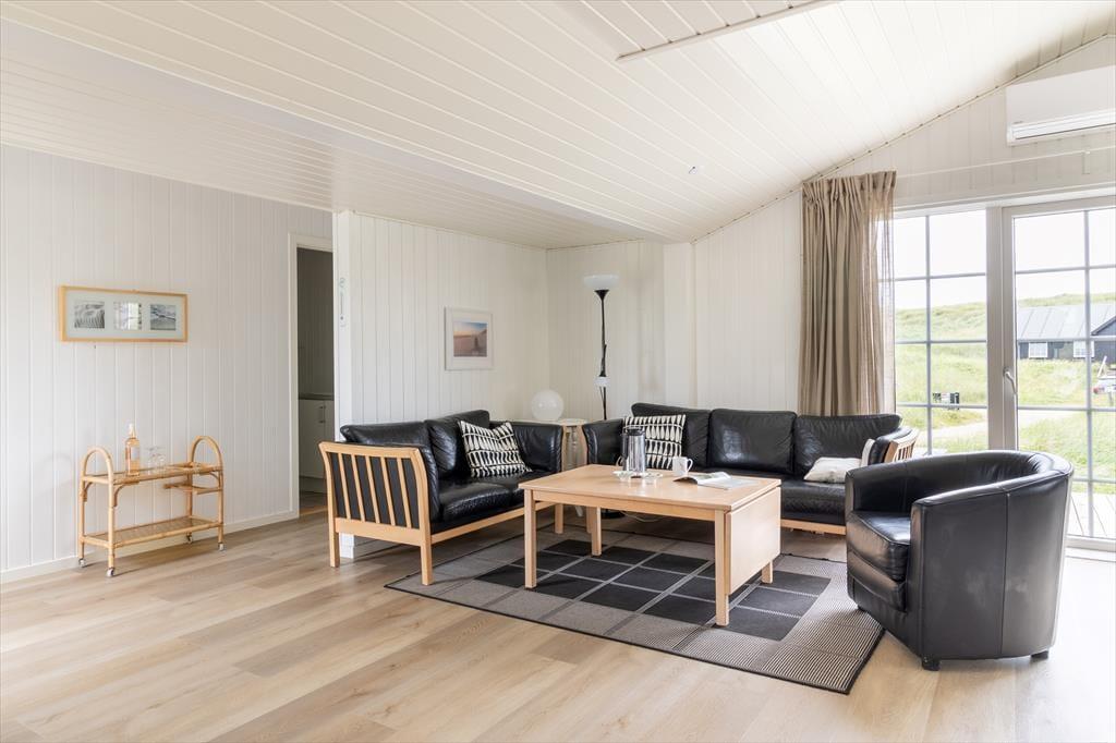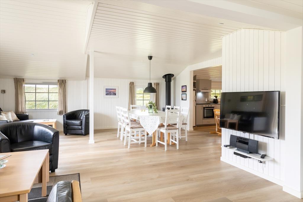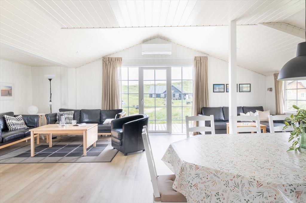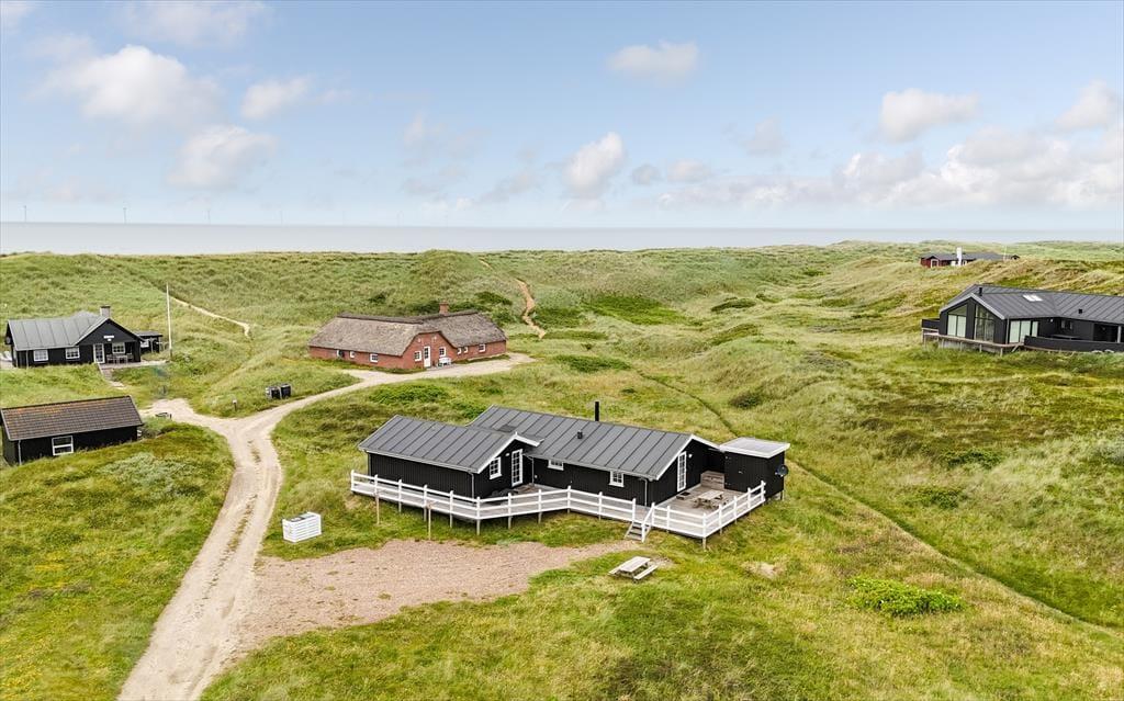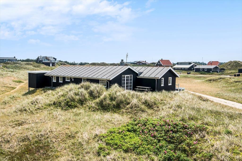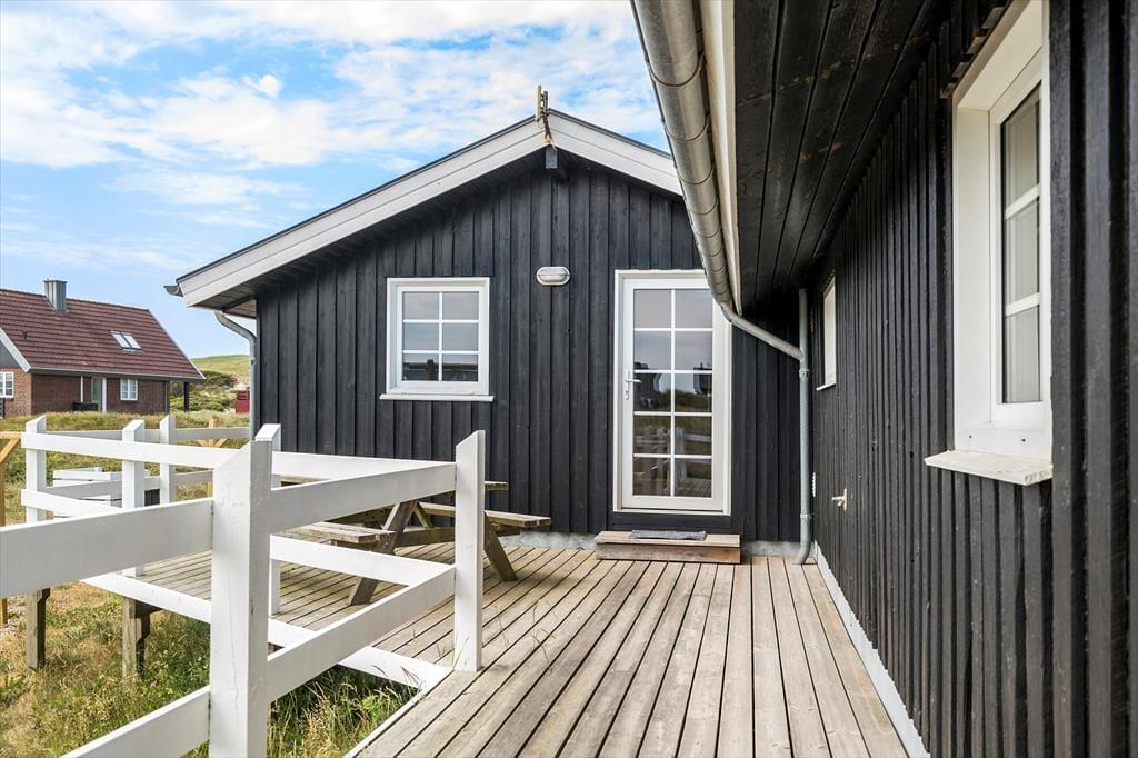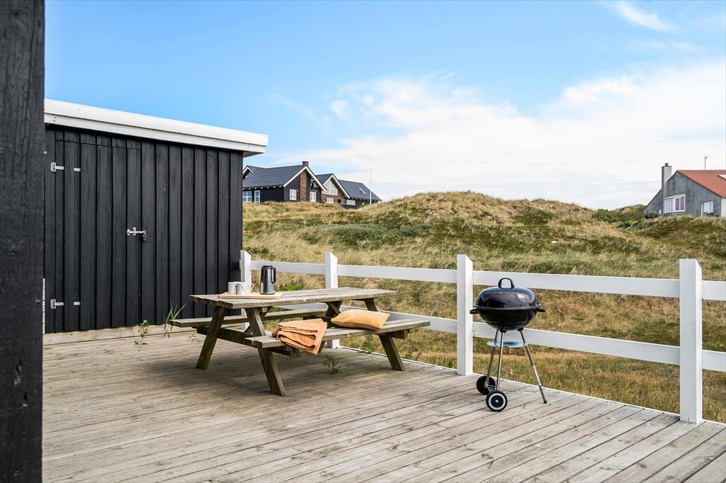 Terrassen og de grønne omgivelser omkring sommerhuset gør det nemt at komme i feriehumør. På solrige dage kan du tage plads på terrassen, hvor duften af grillmad og lyden af fugle fra de nærliggende klitter sætter scenen for hyggelige udendørs måltider. Det omkringliggende område giver mulighed for ugeneret afslapning, hvor både børn og hunde kan boltre sig på den rummelige græsplæne. Her er der plads til leg og små eventyr i det fri, og hvis aftenen byder på klare stjerner og køligere luft, kan du finde dig til rette i en behagelig stol og nyde roen under nattehimlen.