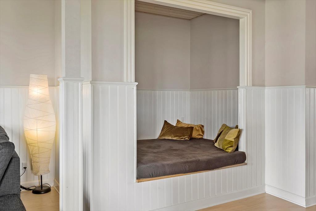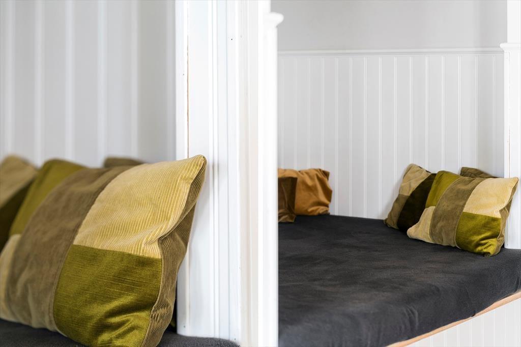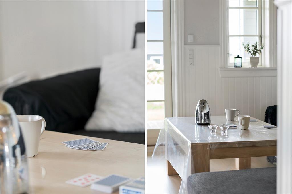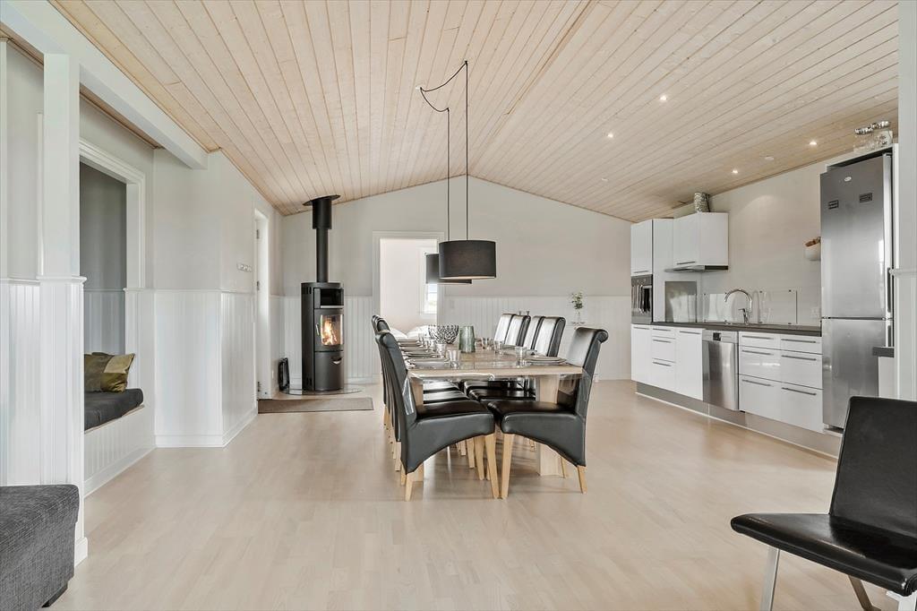 Når du træder ind i sommerhuset, bliver du mødt af en varm og indbydende atmosfære. Her er det nemt at finde ro, og huset emmer af afslapning og ferie. Køkken og stue ligger i åben forbindelse, hvilket giver mulighed for at lave mad og være sammen uden at skulle forlade hinandens selskab. Brændeovnen bliver hurtigt et naturligt samlingspunkt, hvor I kan samles med varme tæpper og gode historier, mens flammerne danser bag ruden. Indretningen er familievenlig og funktionel – og med både en hyggelig alkove og en hems har børnene deres egne små oaser til leg, læsehygge eller stille stunder. Sovepladserne er godt fordelt, så hele familien får mulighed for at sove trygt og godt, og i stuen er der rigeligt plads til brætspil og hyggelige filmaftener.