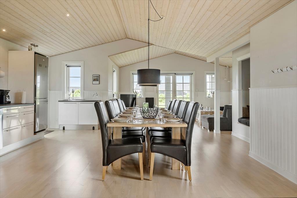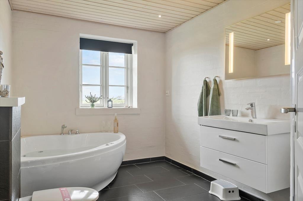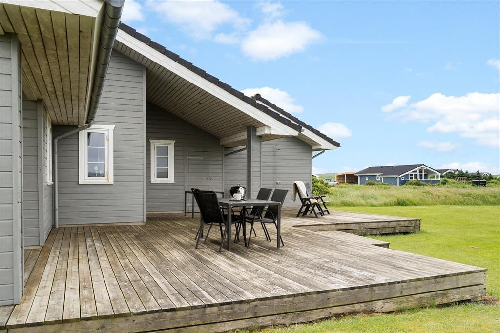 Når solen skinner, og vinden blæser mildt fra vest, er det oplagt at tilbringe ferien i det fri – og det bliver ekstra let her, for sommerhuset har en stor og indbydende terrasse, der er skabt til både afslapning og samvær. Start dagen med morgenkaffen i solen og rund den af med grillhygge under åben himmel. Der er plads til både liggestole, havemøbler og børneleg, og uanset om du drømmer om at slænge dig i solen med en god bog eller se børnene lege på plænen, finder du her de helt rigtige rammer. I haven kan du høre fuglene synge, og duften af saltvand i luften minder dig hele tiden om, hvor tæt du er på havet. Her får du følelsen af at være helt tæt på naturen – men samtidig med alle de bekvemmeligheder, der skaber den perfekte ferie.