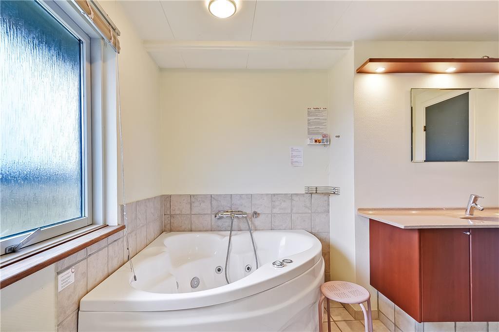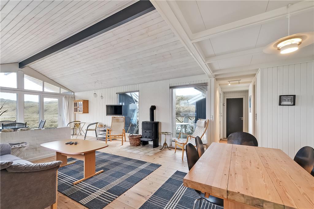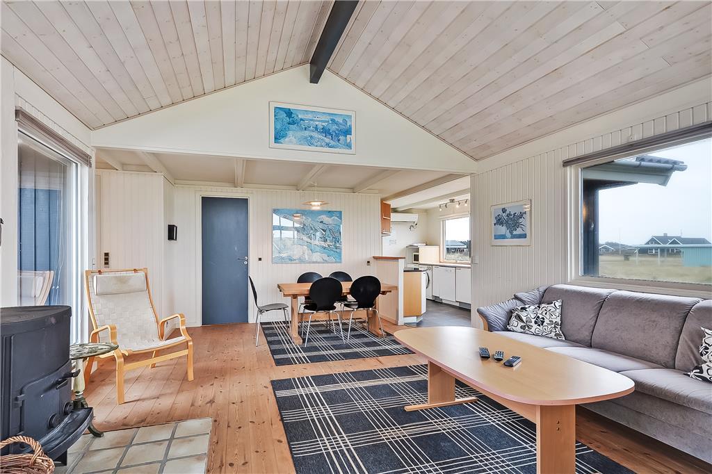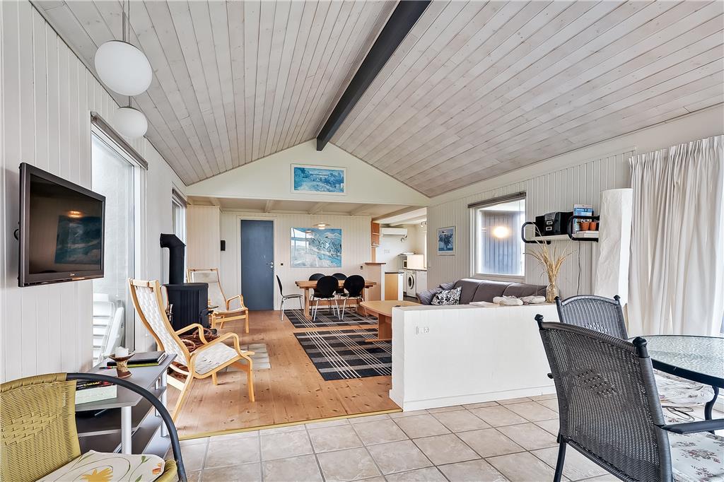 Indenfor møder du en rolig og indbydende atmosfære, hvor du hurtigt finder dig til rette. Køkken og stue ligger i åben forbindelse og indbyder til hyggelige stunder, hvor madlavning og samvær går hånd i hånd. Brændeovnen sørger for varme og ekstra stemning på de kølige aftener, mens det store badeværelse sætter prikken over i’et med både spabad og adgang til sauna. Her kan du virkelig få ro i kroppen og lade feriestemningen sænke sig. Indretningen er hyggelig og funktionel, og soveværelserne er praktisk placeret, så hele familien kan sove godt og være klar til en ny feriedag. Der er skabt plads til både fælles oplevelser og små private pauser – uanset om det er med en god bog, et brætspil eller en middagslur i ro og mag.