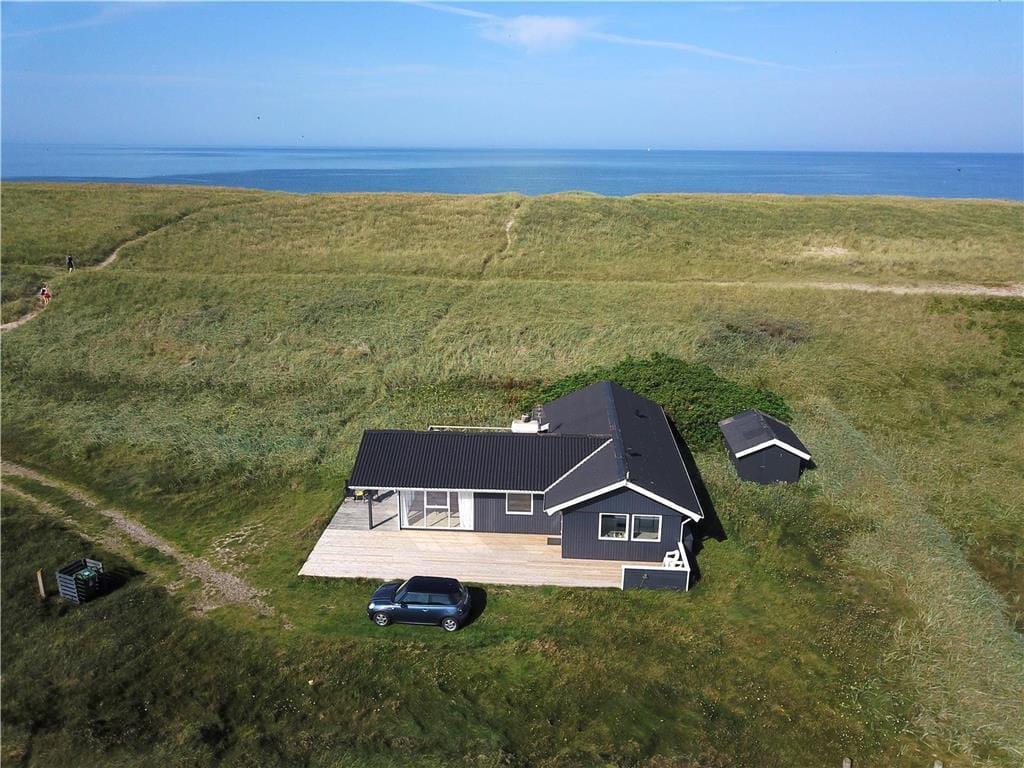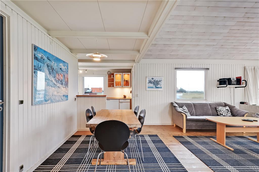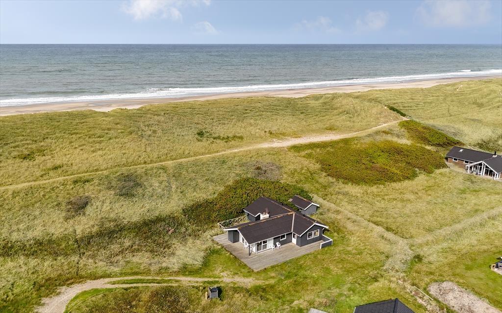 Terrassen foran sommerhuset er et af de steder, du kommer til at tilbringe mange af feriens timer. Herfra kan du høre bølgerne og mærke havbrisen, mens du nyder morgenkaffen eller et godt glas vin i solen. Med havemøbler, liggestole og grill har du alt, hvad du skal bruge til afslappende stunder og udeliv med familien. Når solen står højt på himlen, er det oplagt at tage håndklædet over skulderen og smutte den korte vej ned til stranden. Den korte afstand gør det nemt at tage flere små strandture i løbet af dagen – hvad enten det er for at bade, lege i sandet eller bare gå en tur langs vandet. Og når aftenen falder på, er det oplagt at tænde grillen og lade dagen slutte med god mad og udsigt til klitter og stjernehimmel.