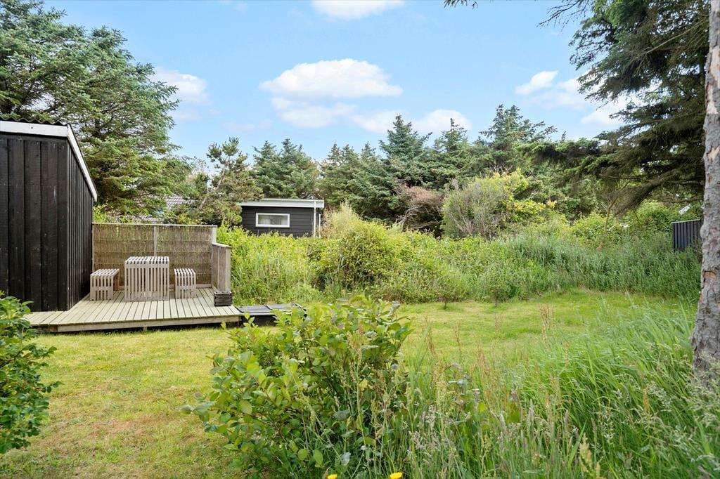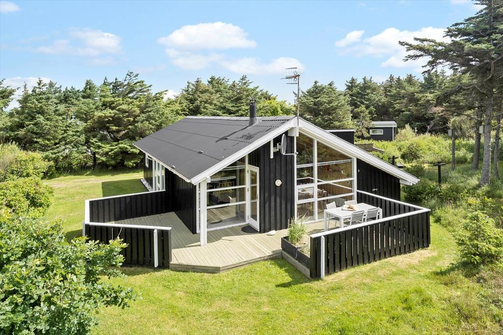 På Viktoriavej 12, omgivet af træer og buske i et fredfyldt skovområde, ligger dette hyggelige sommerhus, som tilbyder en uforstyrret base for din ferie. Her kan du opleve roen i naturskønne omgivelser, mens Vesterhavet kun er en kort gåtur væk.