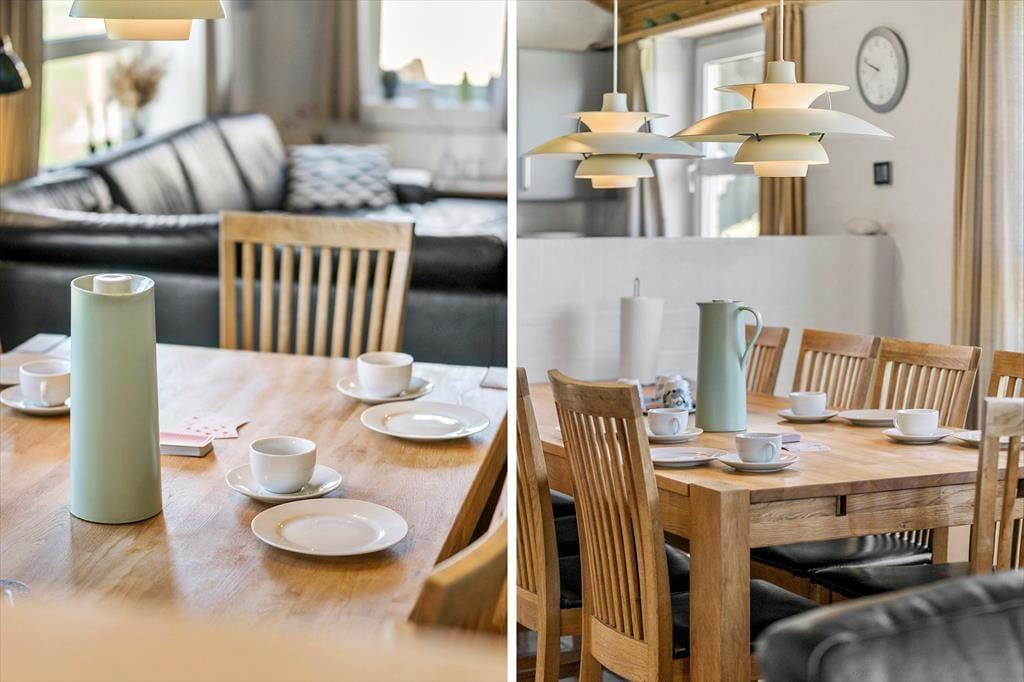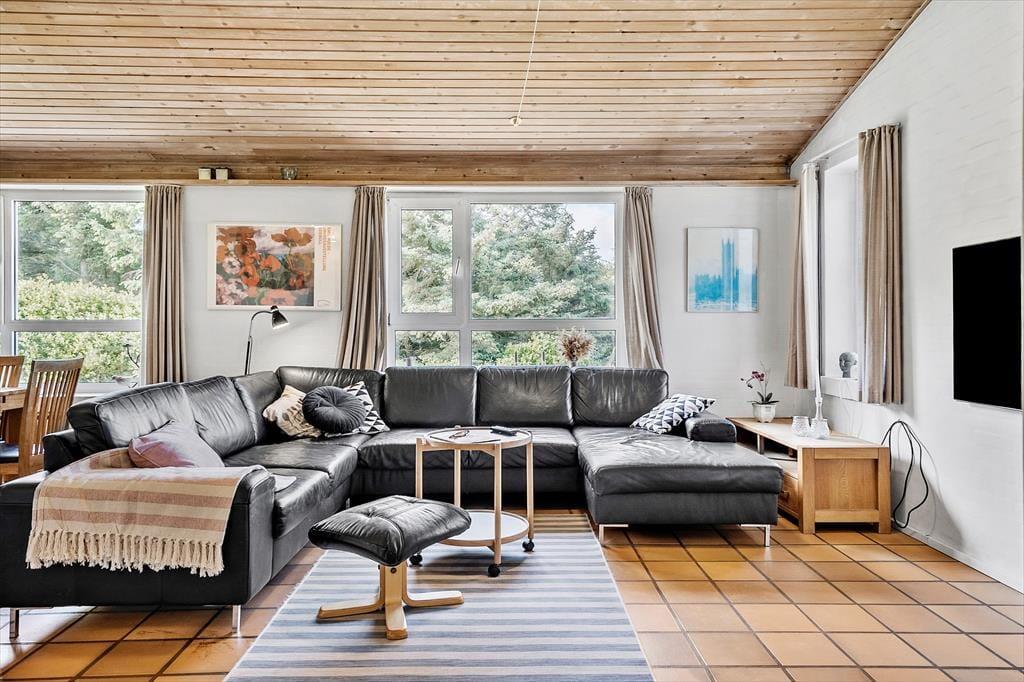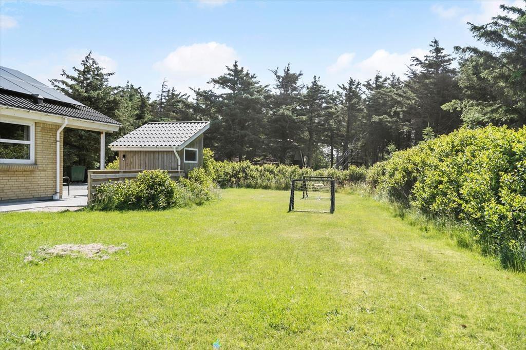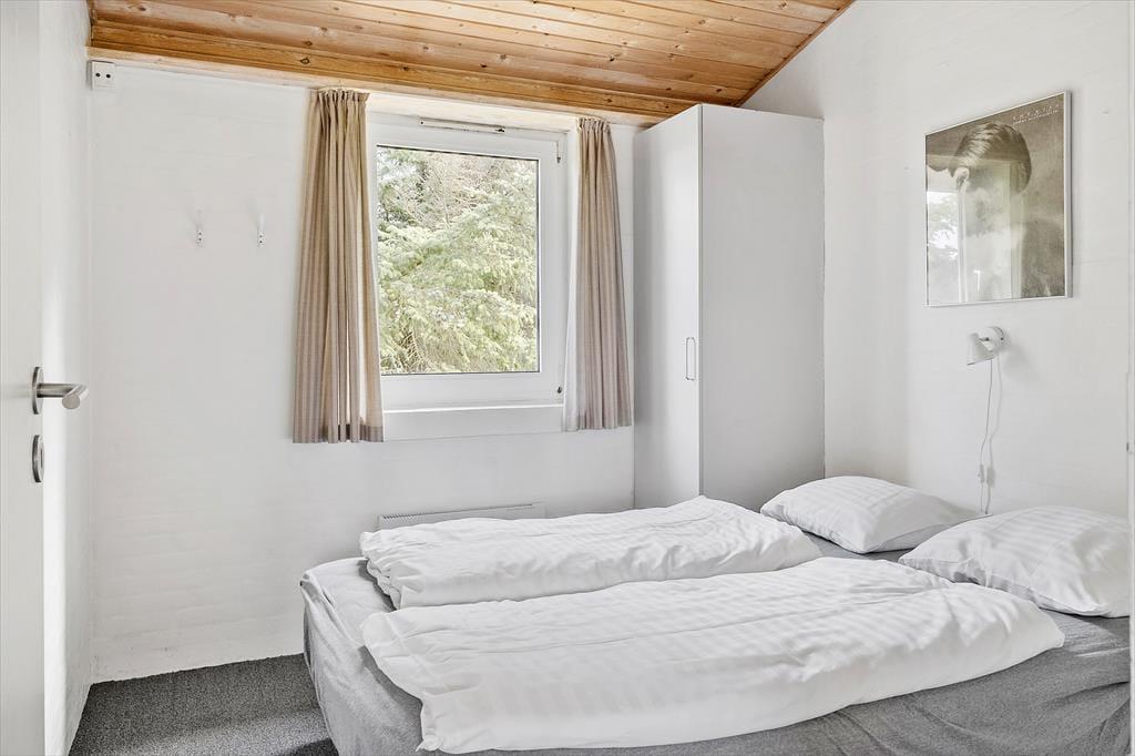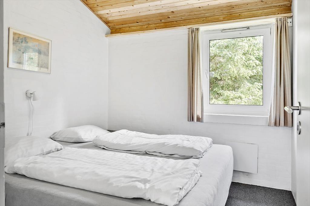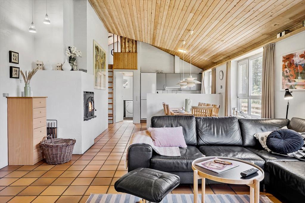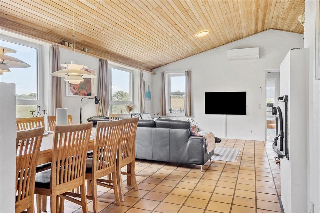 Sommerhusets indretning er lys og indbydende, og her er masser af plads til, at hele familien kan samles og nyde samværet. Med fire soveværelser og to badeværelser er der god plads til både børn og voksne – måske endda til to familier, der holder ferie sammen. Aktivitetsrummet er en af husets perler, hvor både bordtennis, dart og bordfodbold sikrer mange timers underholdning. I køkken-alrummet kan du nemt tilberede dagens måltider, mens samtalerne flyder frit mellem køkkenet og stuen. Efter en dag fuld af oplevelser kan du sætte dig til rette i sofaen, måske med en varm kop kakao foran brændeovnen, mens solen går ned bag klitterne.