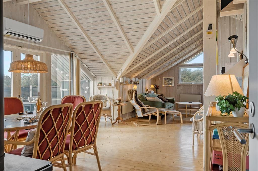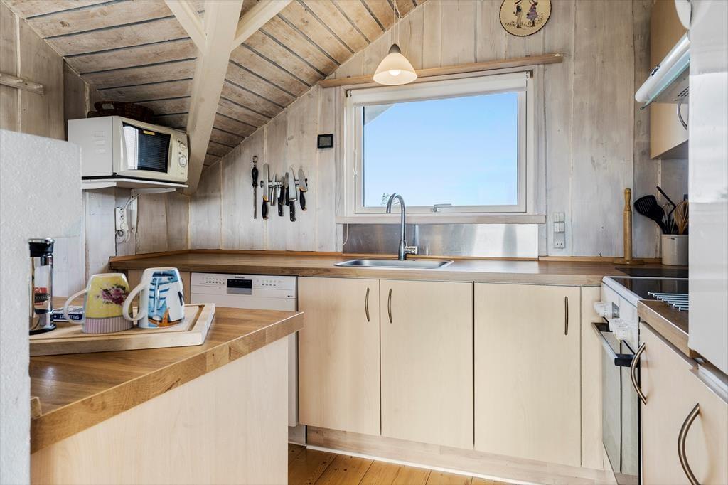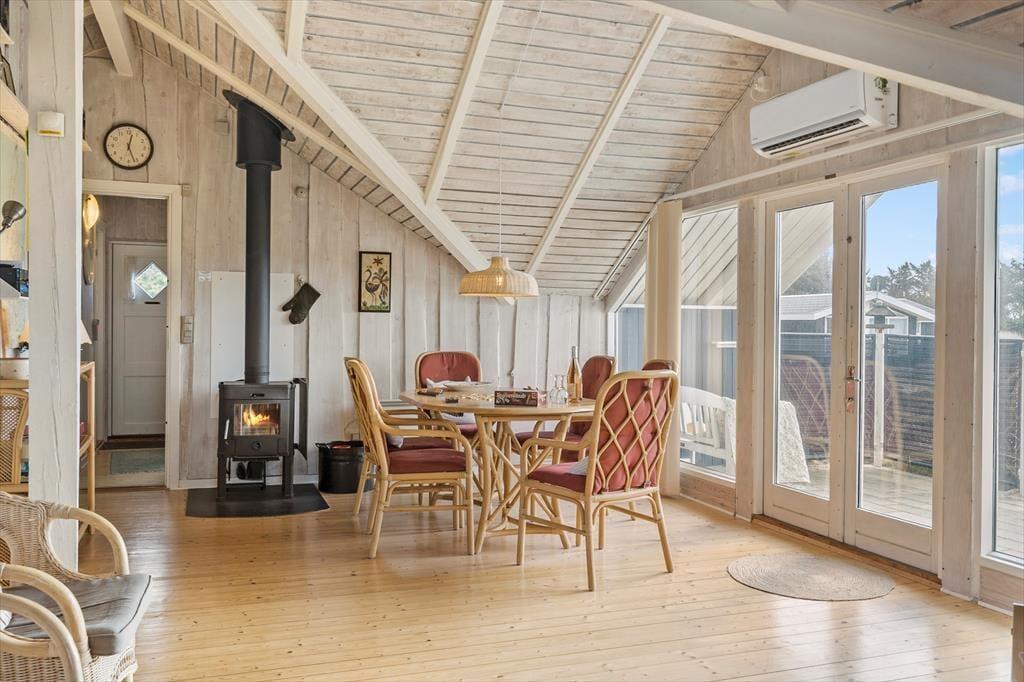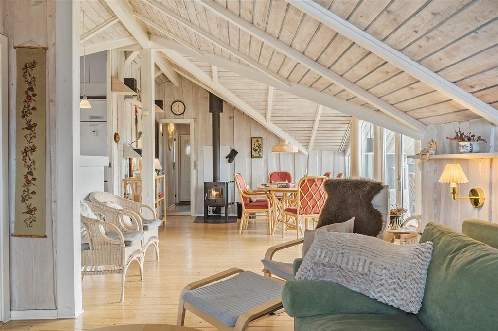 Sommerhuset byder dig velkommen med sin lyse og hjemlige indretning, hvor der er kræset for både komfort og hygge. Huset rummer tre soveværelser, der er ideelle for en familie eller en lille gruppe venner, og det veludstyrede badeværelse gør dagligdagen nem. I stueområdet samles familien naturligt omkring brændeovnen, hvis flammer spreder varme og stemning på kølige dage. Køkkenet, der ligger i åben forbindelse med stuen, gør det nemt at tilberede lækre måltider, mens samtalerne flyder frit. Glæd dig til at synke ned i sofahjørnet med en god bog eller måske se en film sammen – alt sammen i en afslappet atmosfære.