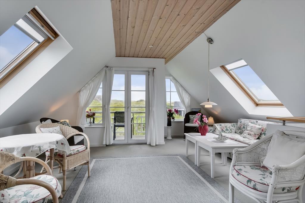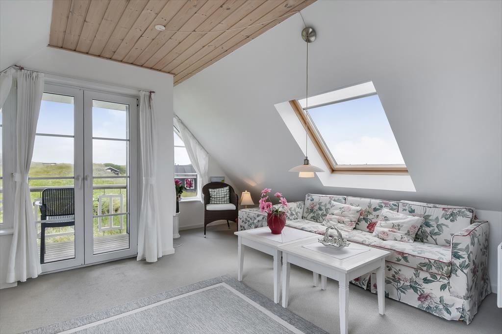 Terrassen, der omgiver huset, inviterer til afslapning i det fantastiske klitlandskab. Her kan du nyde solens stråler, lytte til bølgernes brusen og fordybe dig i en god bog. Den kuperede naturgrund giver en følelse af privatliv og ro, hvor du kan lade hverdagens stress forsvinde.