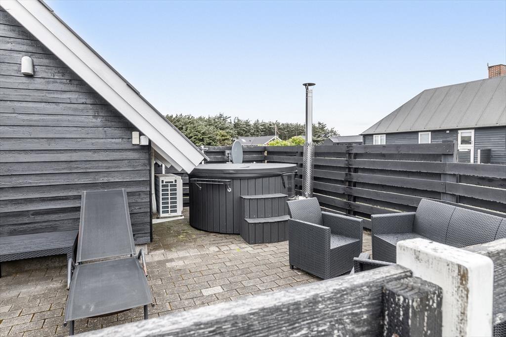 Fra påsken 2025 bliver feriestemningen endnu bedre, når sommerhusets helt nye vildmarksbad står klar til brug. Forestil dig at lade dig sænke ned i det varme vand under en åben, stjerneklar himmel – måske med lyden af havets brusen som hyggelig baggrundsmusik. På sommerhusets terrasseområder er der altid en behagelig siddeplads, uanset om du ønsker at finde skygge eller nyde solens varme stråler. Husets placering giver god mulighed for at tilbringe timerne udenfor helt ugeneret, mens børnene kan lege frit på den grønne grund.