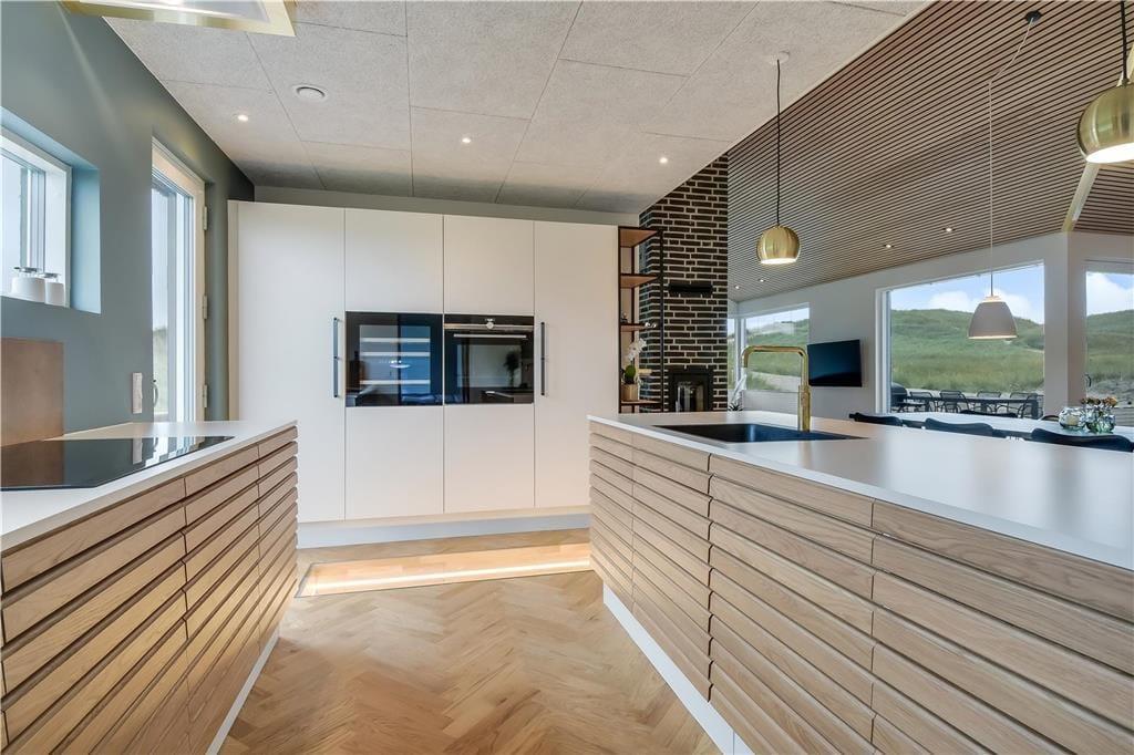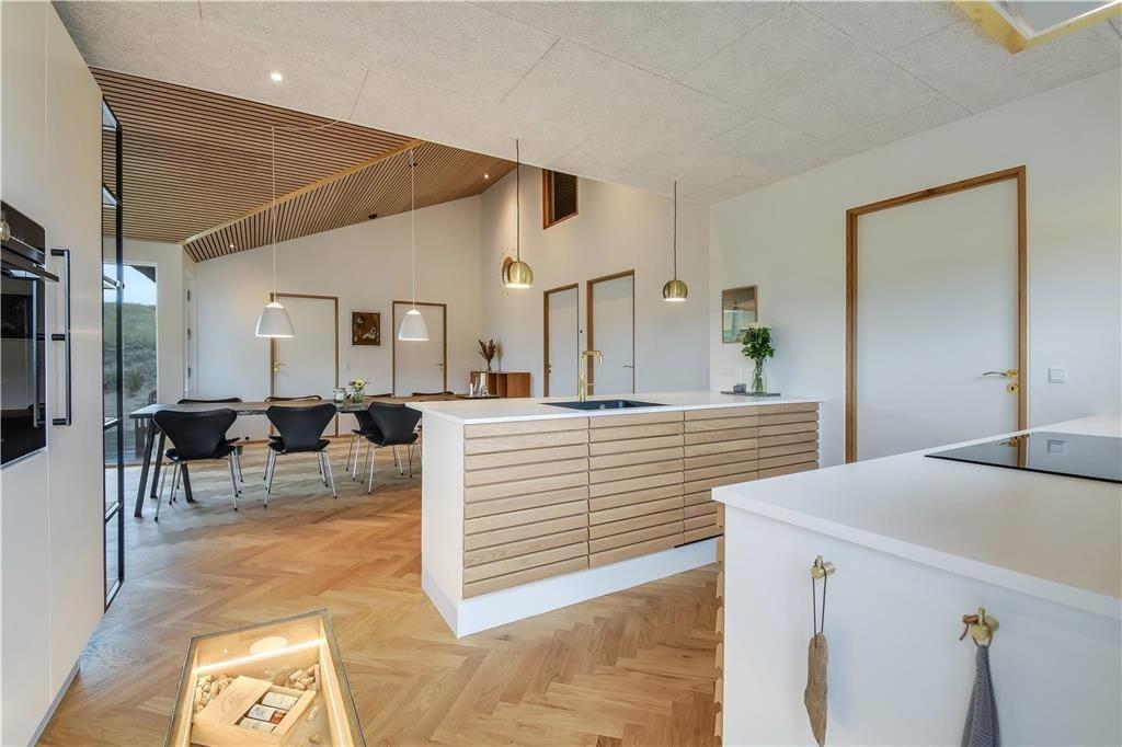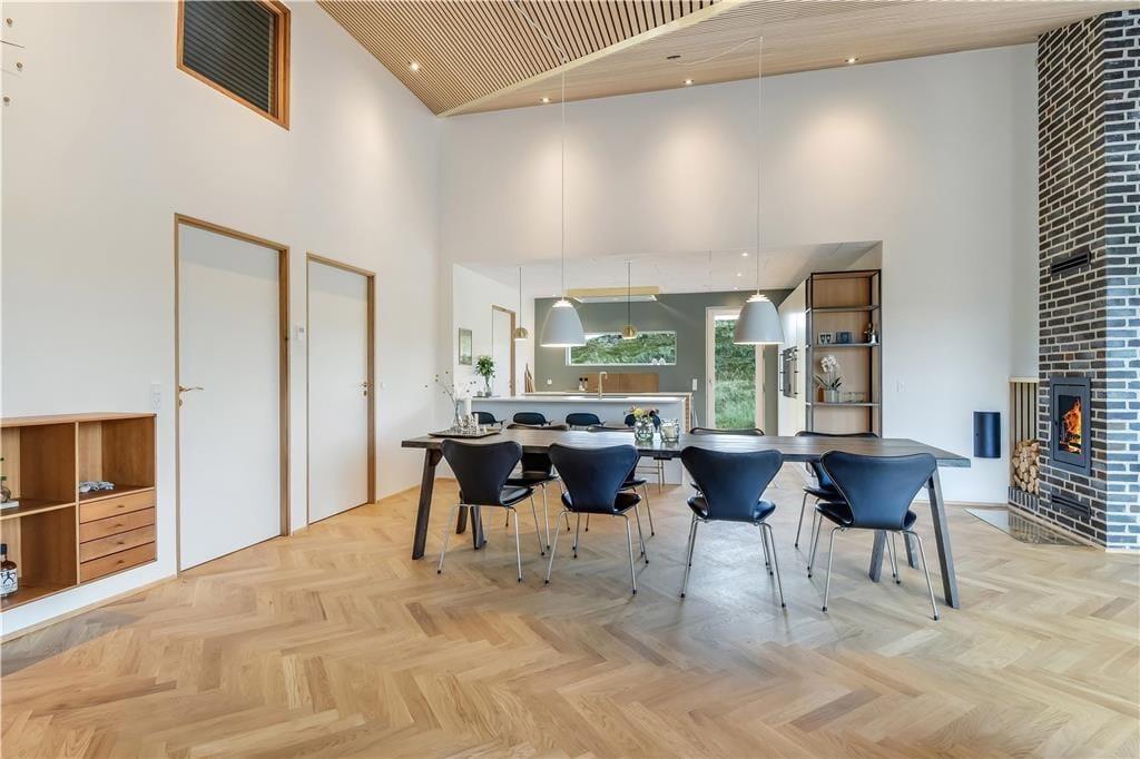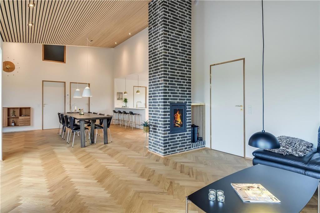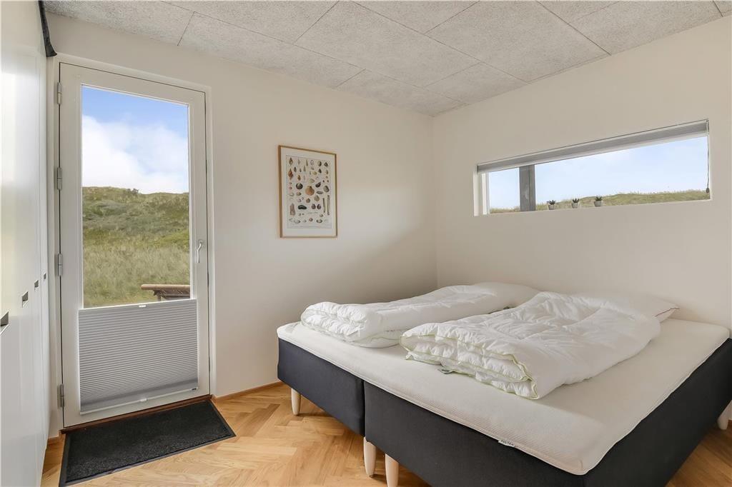 Bag det klassiske ydre gemmer der sig en stilfuld og moderne indretning, der straks får dig til at føle dig godt tilpas. Huset byder på et lyst og åbent opholdsrum, hvor stue og køkken går op i en højere enhed. Her er der højt til loftet, smukke materialevalg og plads til både ro og fællesskab. Skråvægge og store vinduespartier tilfører rummet karakter og masser af naturligt lys, og uanset om I nyder morgenmaden eller en aften foran fjernsynet, er der udsigt til klitlandskabet udenfor. Efter en lang dag ved stranden kan du lade skuldrene sænke sig i det indendørs spabad eller nyde varmen i saunaen. For børn og barnlige sjæle er hemsen et hyggeligt frirum, perfekt til leg eller en stille stund med en god bog.