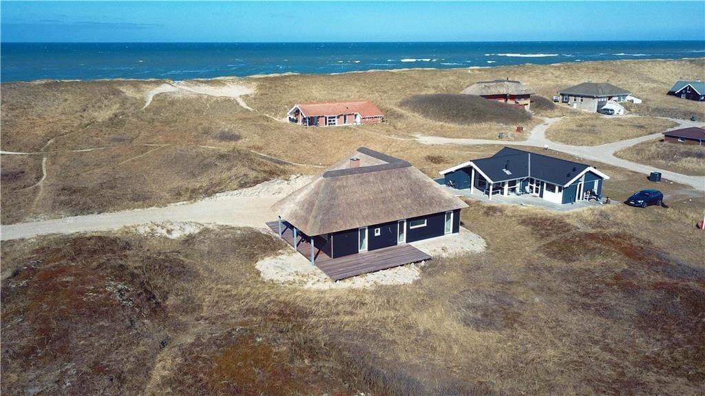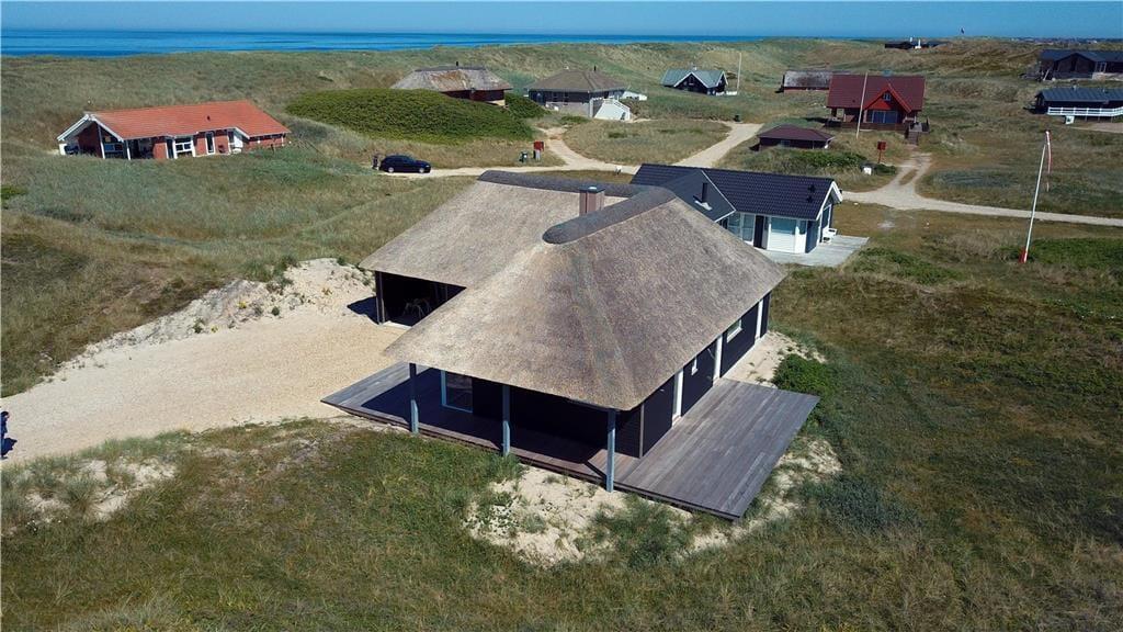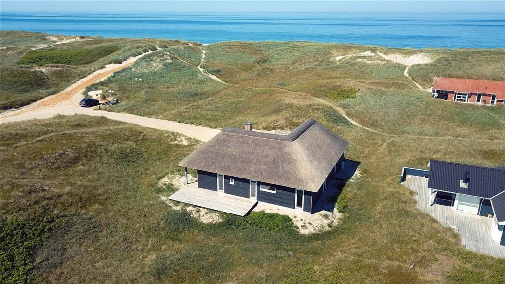 Der er dømt luksus, komfort og naturoplevelser i særklasse, når ferien tilbringes i dette smukke, nybyggede stråtækte sommerhus på Doblervej 12 i Vejlby Klit. Beliggenheden i første klitrække, de moderne faciliteter og den elegante indretning skaber de perfekte rammer for en ferie, hvor du virkelig kan mærke, at du er tæt på både hav, natur og hinanden. Her er tænkt på alle detaljerne – også til familiens firbenede ven, som naturligvis er velkommen.
