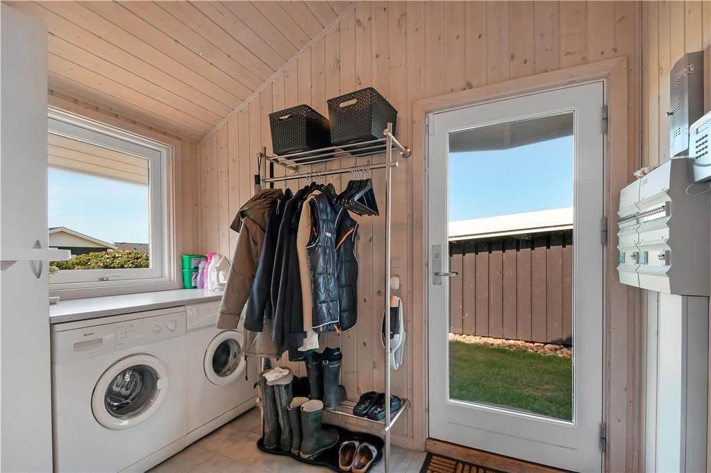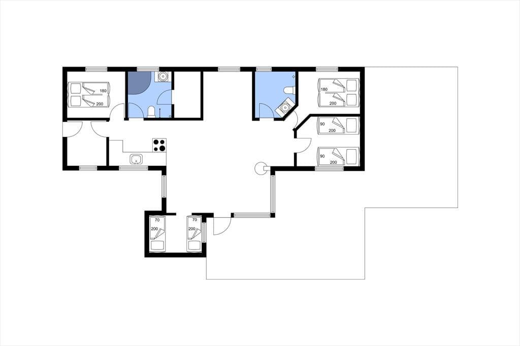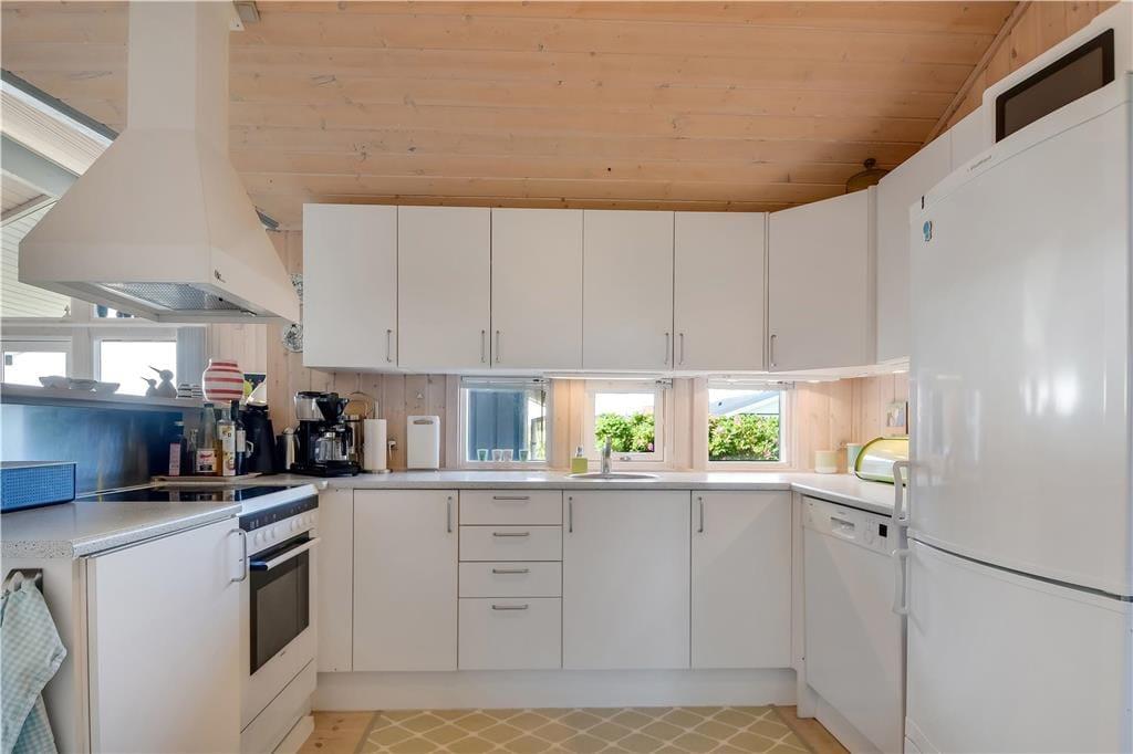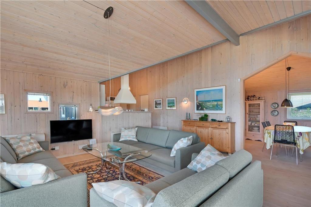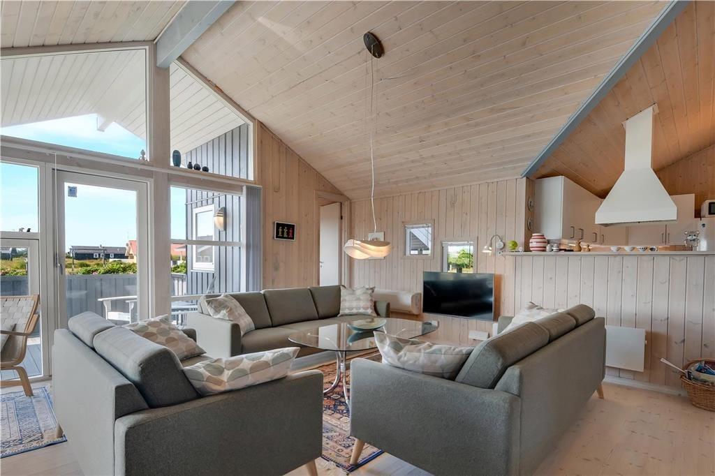 Sommerhuset byder på en lys og rummelig indretning med god plads til både afslapning og samvær. Det åbne opholdsrum med stue og køkken i ét skaber et naturligt samlingspunkt, hvor du kan nyde roen og hinandens selskab – hvad enten det er over et spil, en fælles madlavningssession eller foran den knitrende brændeovn på kølige aftener. De store vinduer lukker lyset ind og bringer dig tæt på naturen – og efter en dag i Vesterhavets salte brise kan du slappe helt af i husets spa, der er placeret på det ene af de to badeværelser. Alt er indrettet med øje for både funktionalitet og hygge, og det føles let at falde til og bare være.