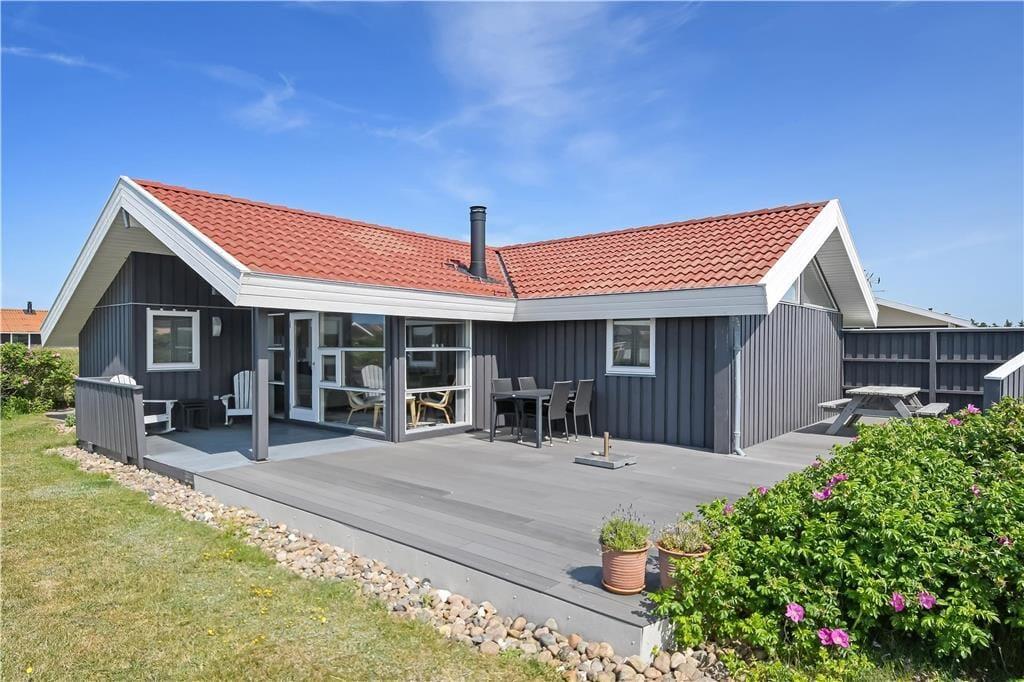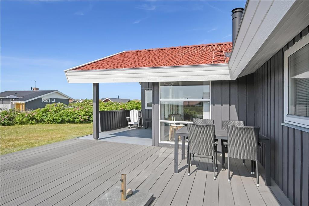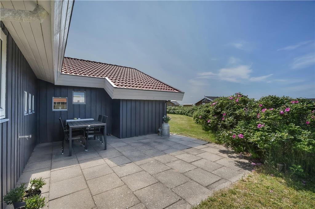Den store, delvist afskærmede terrasse og den fredelige grund danner perfekte rammer om ferielivet i det fri. Her er der god plads til både leg og afslapning, og du kan nemt finde en solrig krog til formiddagskaffen eller en læfyldt plet til aftensmaden under åben himmel. Fordi terrassen er lukket, kan du roligt lade både børn og hund opholde sig udendørs, mens du selv nyder stilheden, lydene af naturen og måske en god bog i liggestolen. Om aftenen kan I tænde op i grillen, dække bord under åben himmel og lade dagen gå på hæld med udsigt til det åbne landskab og en stille vestjysk himmel.