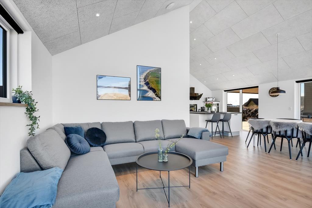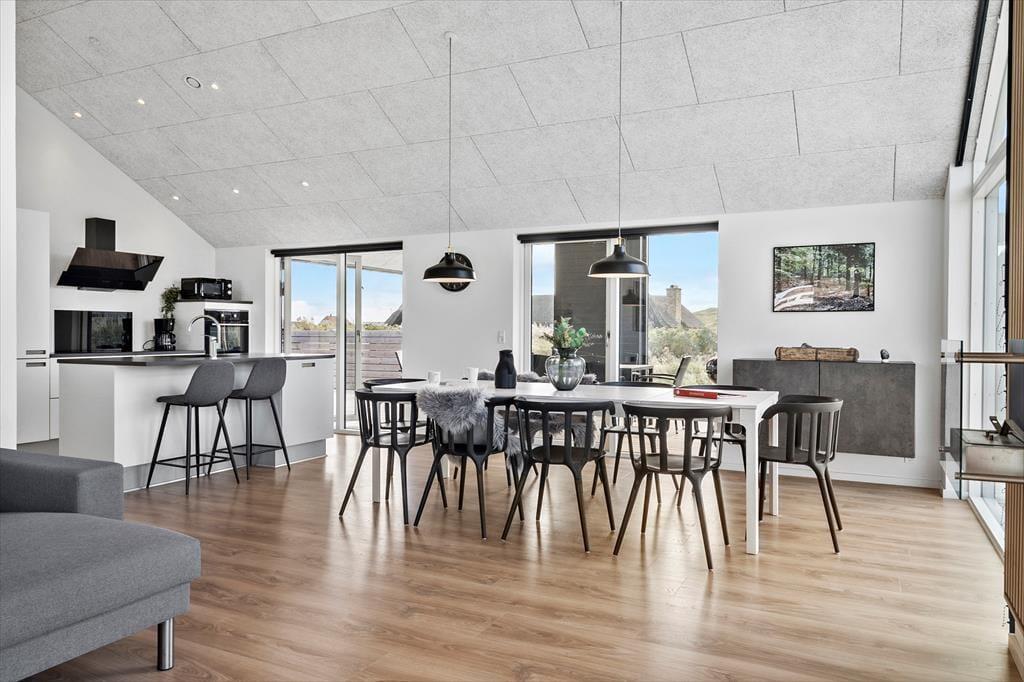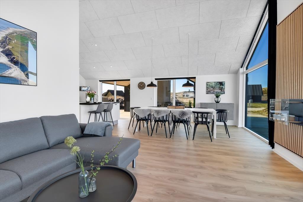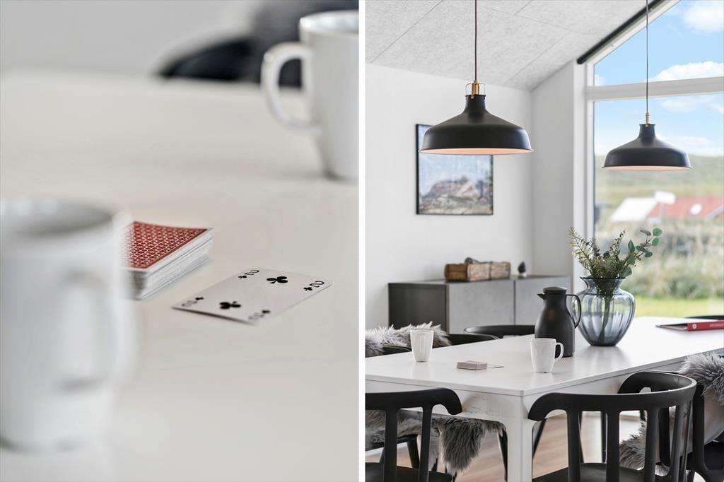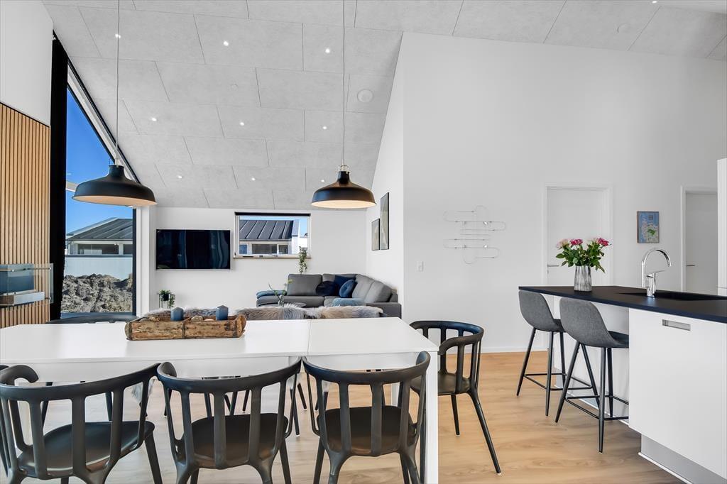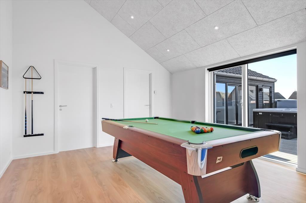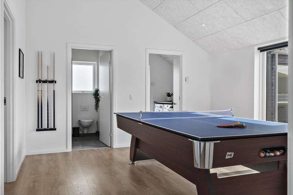 Når I træder ind i dette rummelige sommerhus, mødes I af et stilfuldt interiør og moderne faciliteter. Det åbne køkken-alrum danner rammen om fælles madlavning og hyggelige stunder ved spisebordet, mens stuen indbyder til afslapning foran fjernsynet eller en god bog. Aktivitetsrummet er et sikkert hit for både børn og voksne, hvor I kan udfordre hinanden i bordtennis og pool. Efter en dag fuld af oplevelser kan I nyde en afslappende stund i husets spabad, som er en del af det ene af de to badeværelser.