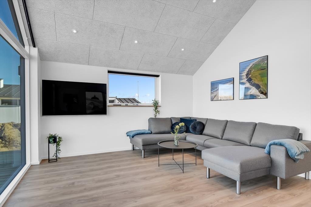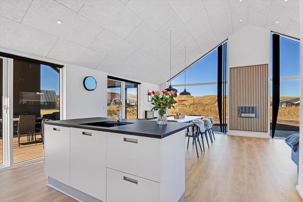 I Vejlby Klit, kun 150 meter fra stranden, finder I dette moderne sommerhus fra 2022. Her er der lagt op til en ferie fyldt med komfort og underholdning, både inde og ude.