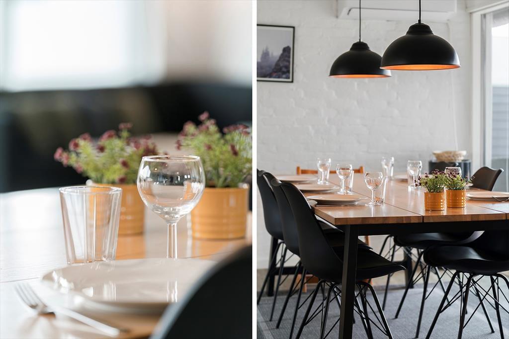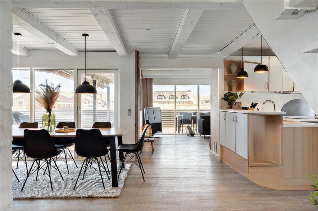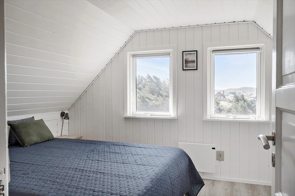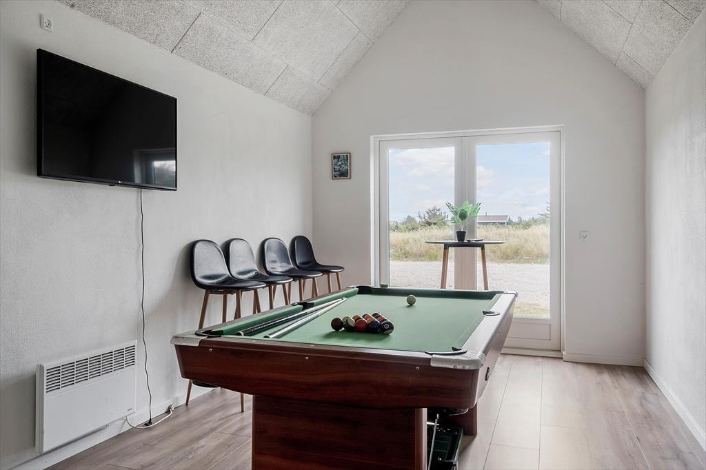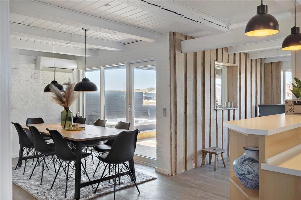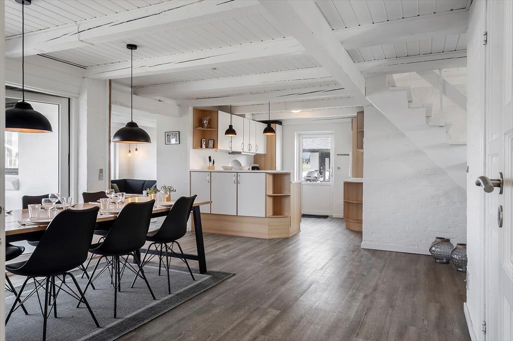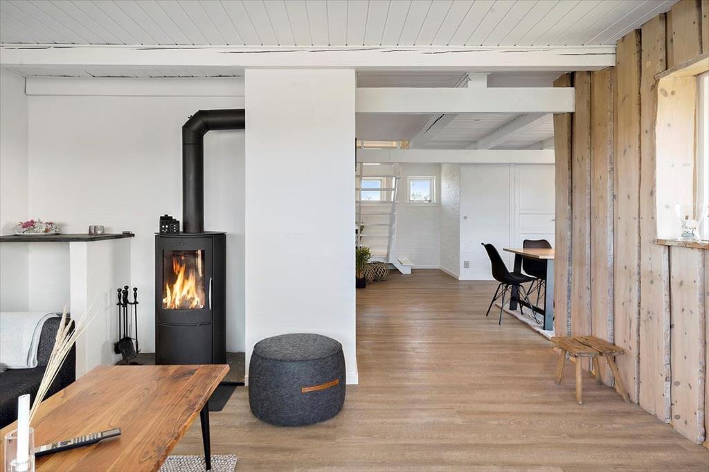 Indretningen er lys, imødekommende og fyldt med små detaljer, der skaber en hjemlig og behagelig atmosfære. I stueetagen finder du det åbne opholdsrum, hvor køkken og stue glider sammen i ét – perfekt til fælles madlavning, brætspil og hyggelige aftener foran brændeovnen. Når du trænger til lidt ekstra forkælelse, kan du nyde en stille stund i husets sauna, som er ideel efter en lang gåtur ved havet. Huset er indrettet i to plan, hvilket giver rigeligt med plads til både fællesskab og privatliv – og aktivitetsrummet er det oplagte sted at slippe konkurrencegenet løs med spil og leg for både børn og voksne.