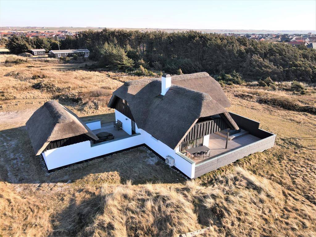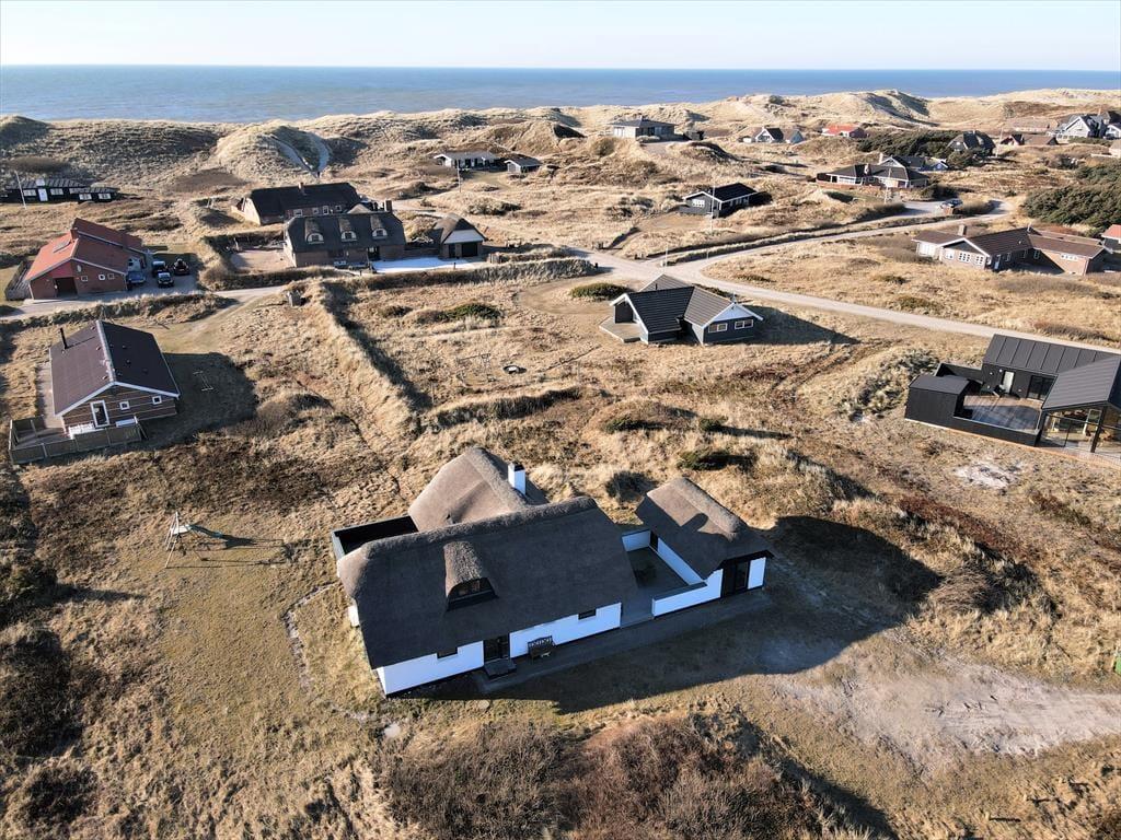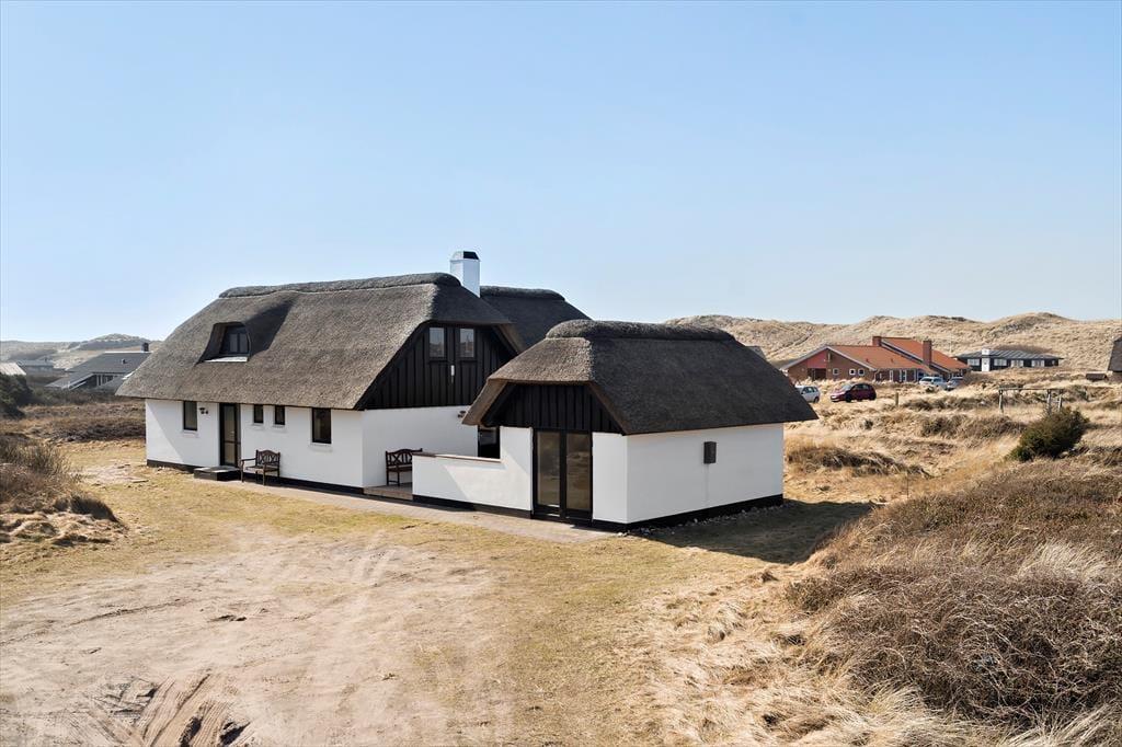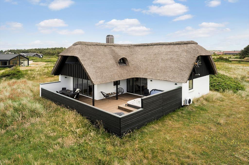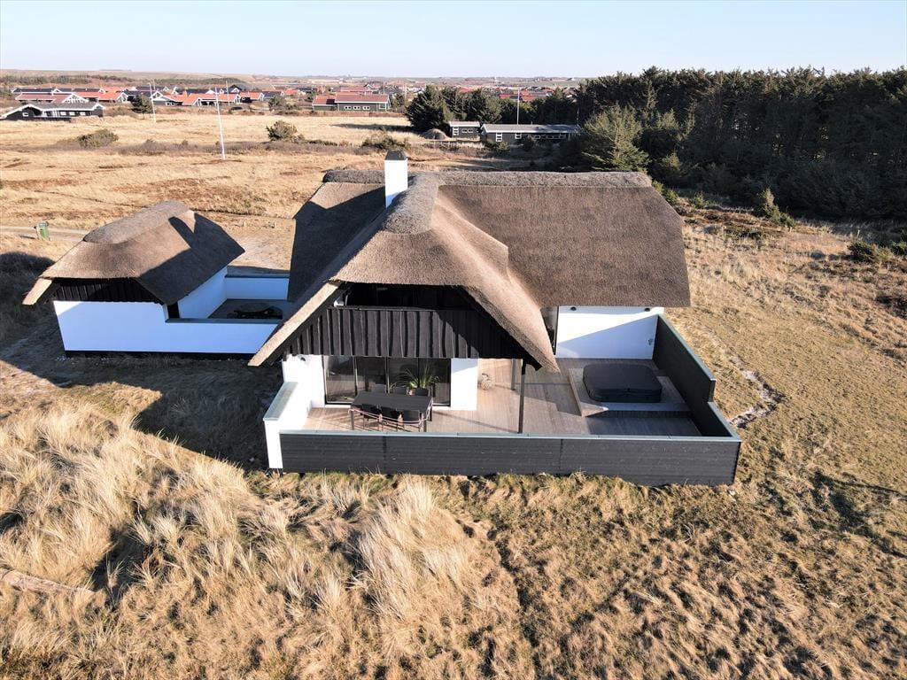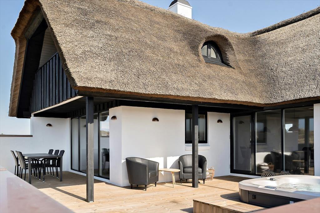 På Merchantvej 5 i Vejlby Klit Strand ligger et sommerhus, der forener klassisk charme med moderne komfort. Det flotte stråtag og den hyggelige atmosfære giver stedet en helt særlig stemning, som indbyder til ægte feriehygge – og med kun 200 meter til Vesterhavets bølger er det nemt at komme helt ned i gear. Det rummelige sommerhus fordeler sig over to plan og byder på både indendørs sauna og udendørs spa samt et aktivitetsrum, hvor hele familien kan more sig. Her er plads til nærvær og afslapning – og selvfølgelig er hunde også velkomne.