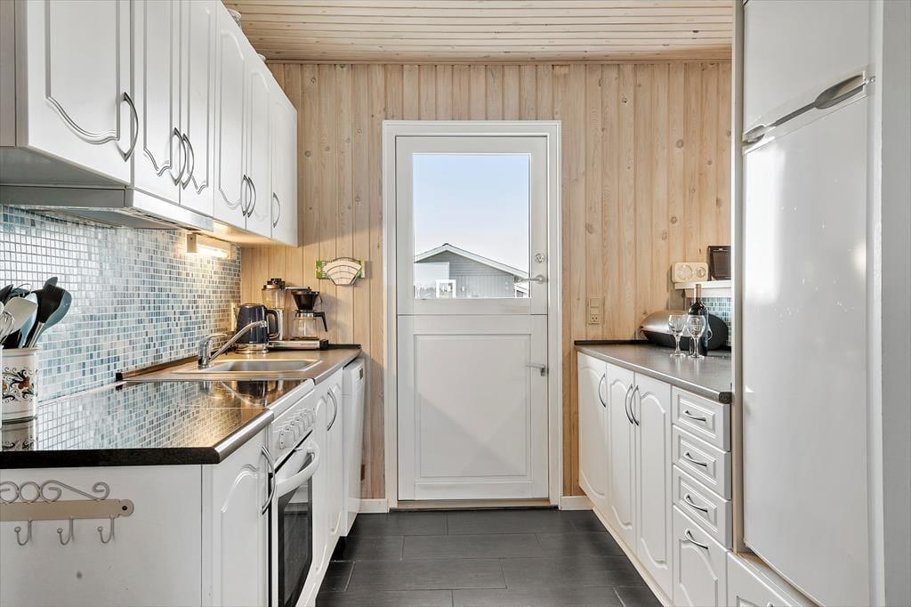 Allerede når du træder ind i sommerhuset, fornemmer du den varme og indbydende atmosfære. Indretningen er gennemført med fokus på hygge og funktionalitet – og med sine lyse materialer og velvalgte detaljer er huset både hjemligt og afslappende. Stue og køkken ligger i åben forbindelse, så du nemt kan være sammen med dine nærmeste, mens maden tilberedes eller brætspillene findes frem. Efter en dag med strandture eller leg i haven kan du runde af med en tur i spaen eller nyde varmen fra saunaen – en luksus, der forlænger feriestemningen, uanset årstiden.