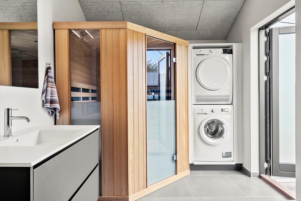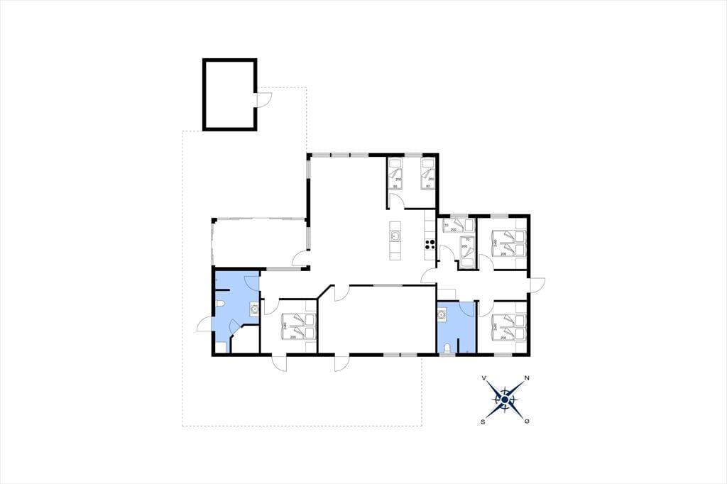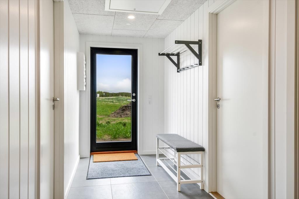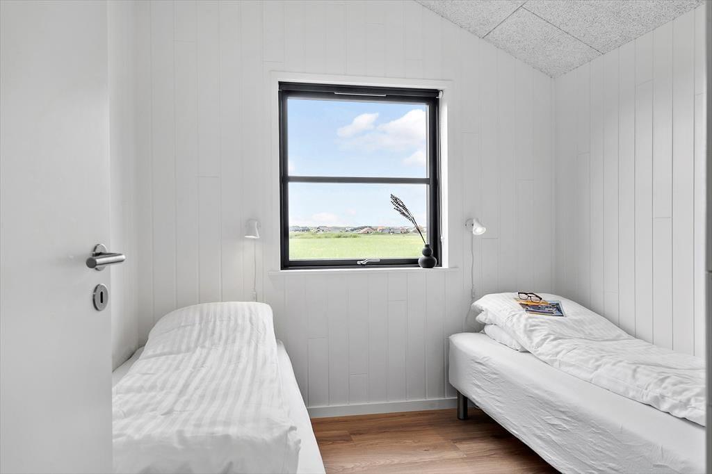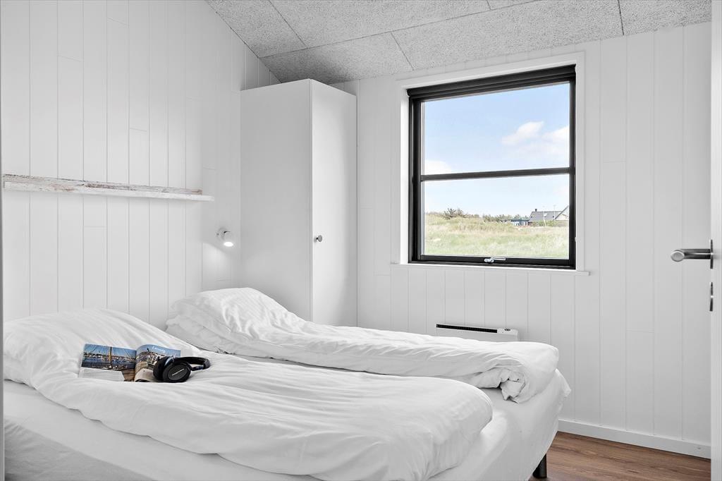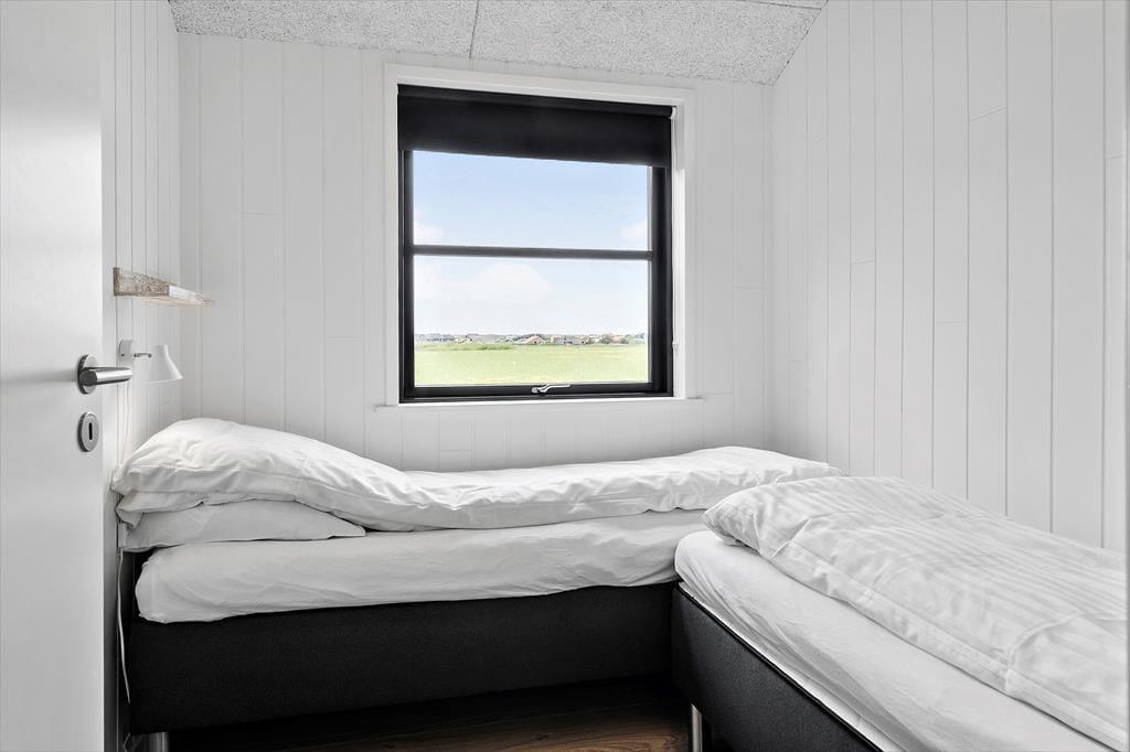 Sommerhuset, opført i 2022, byder på en lys og rummelig atmosfære med højt til loftet og store vinduespartier, der lader dagslyset strømme ind. De fem soveværelser er indrettet med komfortable senge, hvoraf tre har dobbeltsenge og to har enkeltsenge, hvilket gør huset velegnet til op til ti personer. De to badeværelser er strategisk placeret i hver sin ende af huset; det største er udstyret med en indbydende sauna og har direkte adgang til terrassen, hvor en udendørs bruser og spabad venter. Opholdsrummet kombinerer køkken, spiseplads og stue i ét åbent område, perfekt til fælles madlavning og hyggelige stunder foran fladskærms-tv'et. Det tilstødende aktivitetsrum med poolbord sikrer underholdning for alle aldre, og udestuen med fleksible glaspartier giver mulighed for at nyde naturen uanset vejret.