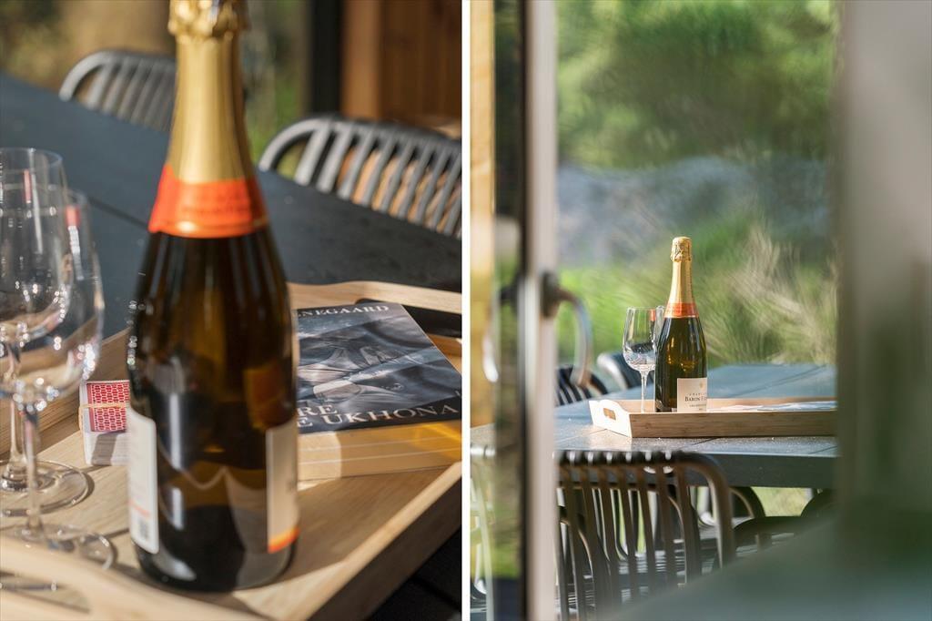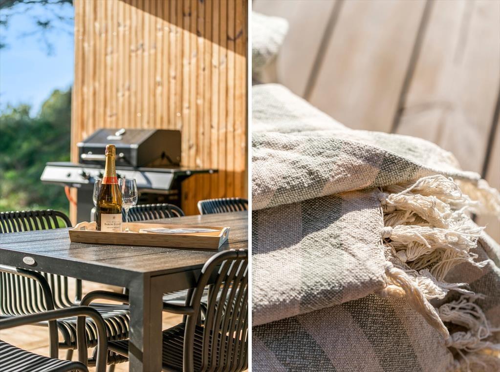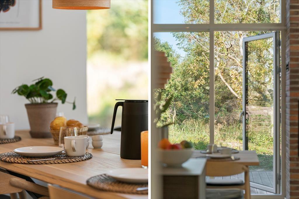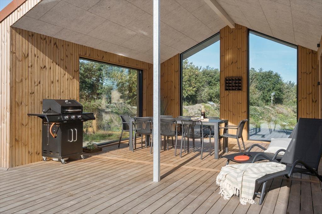 Udenfor venter sommerhusets hyggelige terrasseområder. Her kan du nyde morgenkaffen i ro og mag, mens fuglene kvidrer i baggrunden. Om aftenen kan I samles omkring grillen til et lækkert måltid under åben himmel. De rolige omgivelser skaber en helt særlig stemning, der indbyder til nærvær og afslapning.