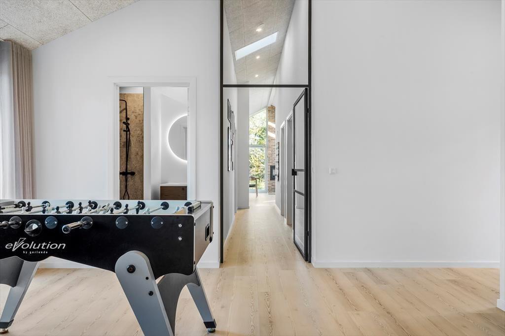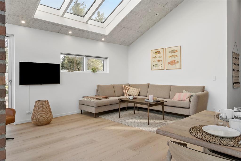 Når du træder indenfor, mødes du af et helt nyt sommerhus, hvor alt er indrettet med tanke på både komfort og æstetik. Lyse farver og moderne materialer skaber en indbydende atmosfære, hvor der er plads til både afslapning og hyggeligt samvær. Det åbne køkken-alrum bliver husets naturlige samlingspunkt, og den rummelige stue indbyder til filmaftener og lange brætspilssessioner. Når aftenen falder på, kan du glæde dig til at trække dig tilbage til et af de rolige soveværelser. Sommerhuset er ideelt for både små familier og par, der ønsker at forkæle sig selv med en moderne og veludstyret feriebolig.