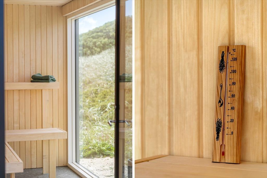 Terrassen omkring huset er noget ganske særligt. Med sine 200 m² – er der rig mulighed for at finde både sol og læ, uanset tidspunktet på dagen. Start morgenen med et udendørs brusebad under himlen, slap af i spaen med udsigt til klitterne, og lad dagen runde af med en tur i saunaen, mens aftenens fred og ro sænker sig. Her er masser af plads til fælles måltider, lange kaffepauser og øjeblikke for dig selv med en bog i hånden og vinden som baggrund. Og når du får lyst til at gå til stranden, er det blot at følge stien bag huset og lade marehalmen vise vej. Udelivet bliver næppe meget bedre end her.