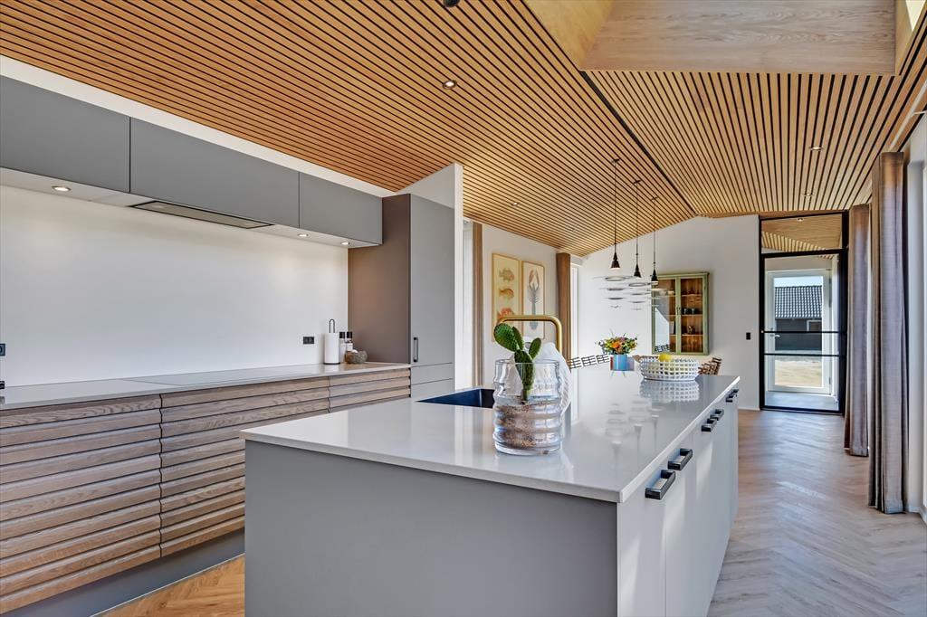 Lucievej 6 B i Vejlby Klit Strand er stedet for dig, der søger et luksuriøst sommerhus, hvor komfort, design og natur går op i en højere enhed. Her bor du i et særdeles stilfuldt hus med træbeklædte akustiklofter og elegant sildebensparket – og du får adgang til hele 200 m² træterrasse med både udespa, udendørs bruser og sauna under åben himmel. Den smukke beliggenhed tæt på klitterne og stien, der fører direkte til stranden, gør det nemt at finde roen og slippe hverdagen. Kort sagt: Et unikt feriehus til dig, der ikke vil gå på kompromis.