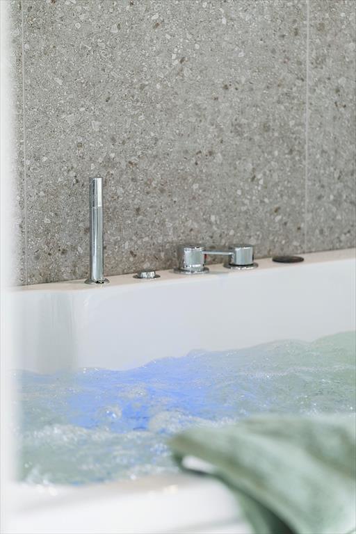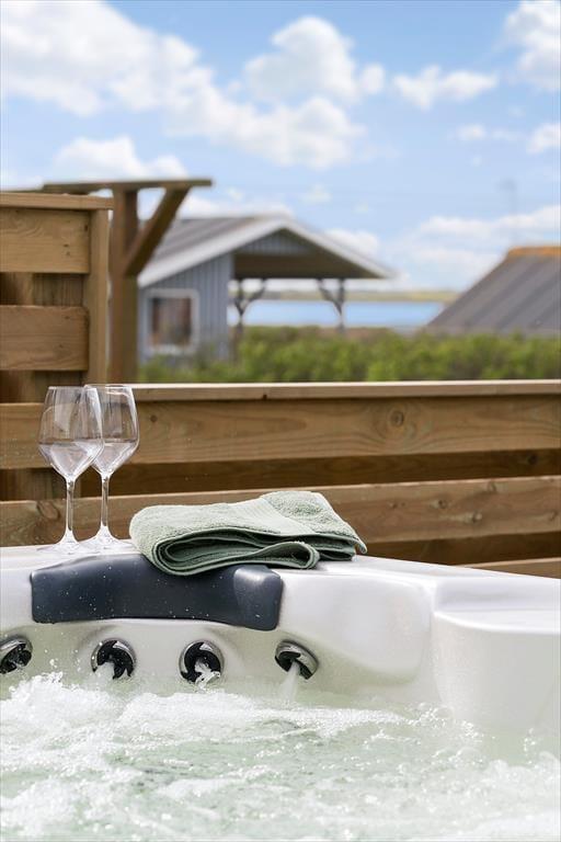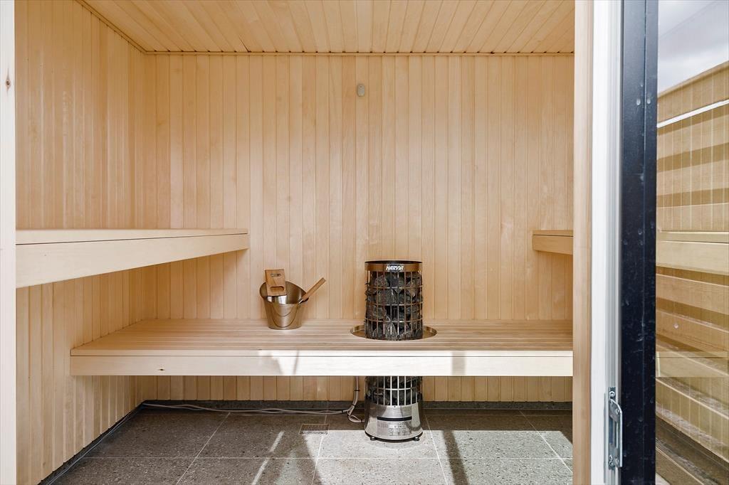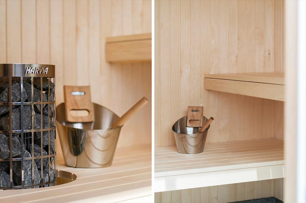 Wellnessområdet gør det muligt at nyde udelivet i ydersæsonerne, for selv når det er køligt udenfor, er en saunatur og et varmt bad den perfekte afslutning på en oplevelsesrig feriedag. Saunaen har vindue ud mod spabadet.