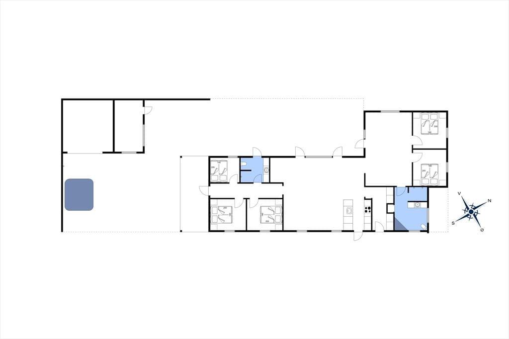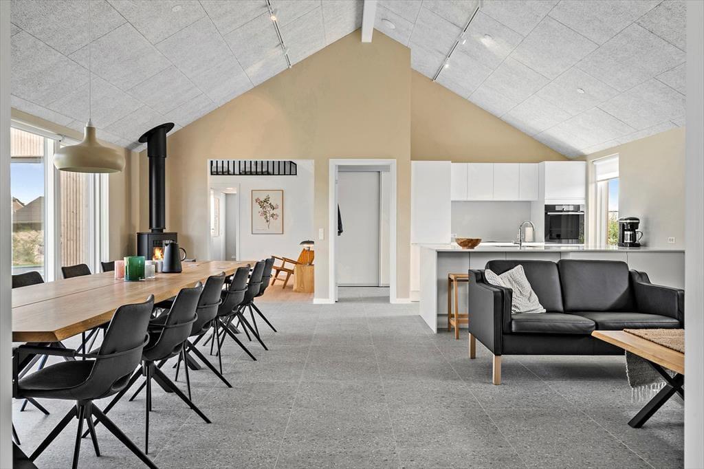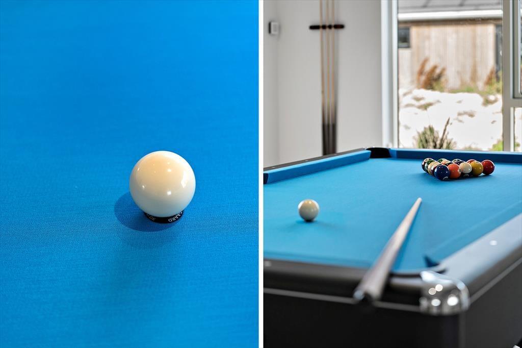 Allerede ved første skridt ind i sommerhuset på Knaresbrovej 11 mærker du den gennemførte og moderne stil, som præger hele huset. Her er der tænkt på detaljen, og indretningen oser af kvalitet og komfort. Den åbne stue og køkkenafdeling samler hele selskabet i ét fællesrum – og her er plads til både madlavning, sofahygge og samtaler på tværs af bord og sofa. Hemsen i stuen er et ekstra hyggeligt indslag og perfekt til både en lur, godnathistorier eller børneleg. Når vejret kalder på indendørs aktivitet, er aktivitetsrummet klar med både billard og bordtennis, så konkurrencelysten kan få frit spil. Når det er tid til afslapning, lokker husets egen indendørs spa med varme bobler og fredelig stemning – ideelt efter en dag med strandture eller leg i haven.