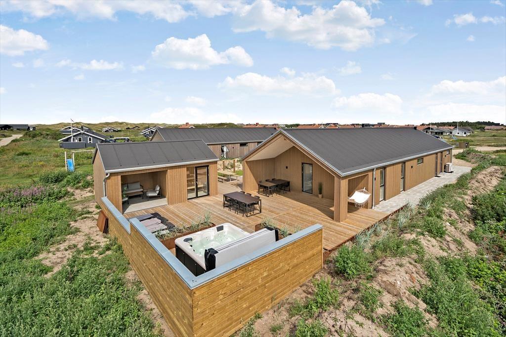 Hvis du er på udkig efter et moderne og rummeligt sommerhus tæt på Vesterhavet, hvor hele familien – inklusive hunden – kan slappe af, hygge og lege, så er Knaresbrovej 11 i Vejlby Klit Strand et fantastisk bud. Her får du alt det bedste fra et klassisk sommerhus kombineret med luksuriøse faciliteter som både indendørs og udendørs spa, aktivitetsrum og lækkert udeområde. Og med kun 300 meter til stranden ligger naturoplevelserne nærmest lige uden for døren.