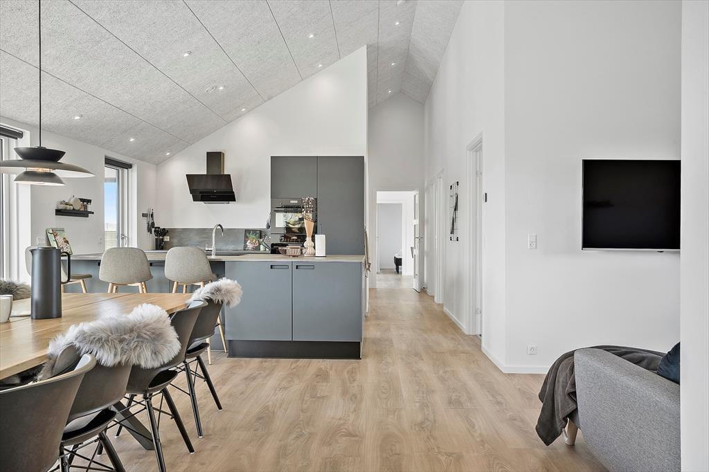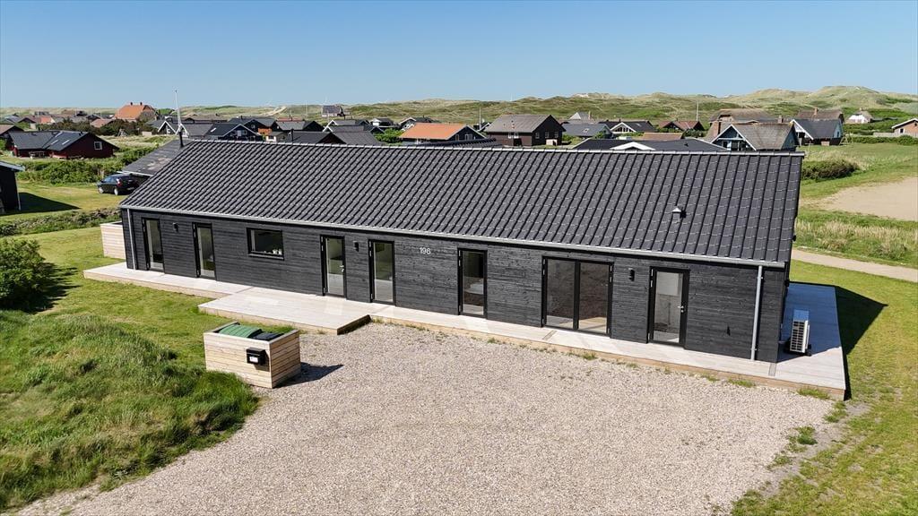 Drømmer du om et sommerhus, hvor moderne komfort og feriehygge går hånd i hånd? Så bør du kigge nærmere på Neerlandiavej 196 i Vejlby Klit Strand. Her får du en gennemført feriebolig med alt, hvad hjertet kan begære: aktivitetsrum, havestue, udespa med sauna og udebruser – og ovenikøbet tilladt at medbringe hund. Indretningen er stilren, lys og indbydende, og den store terrasse indbyder til lange, afslappende dage i solen eller under åben himmel.