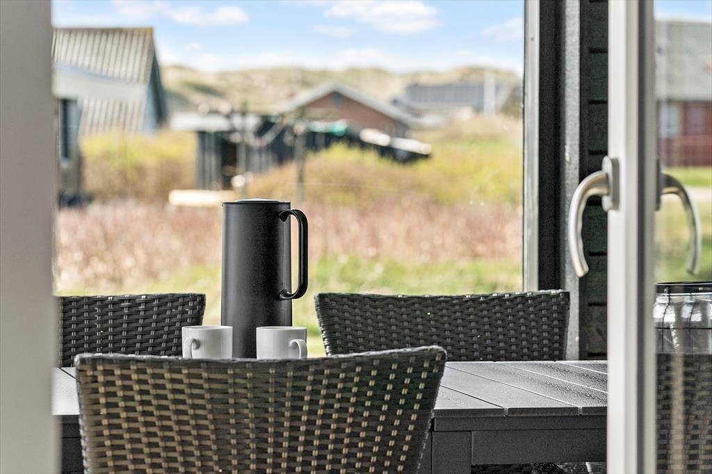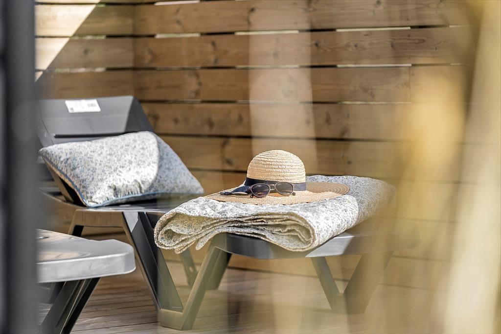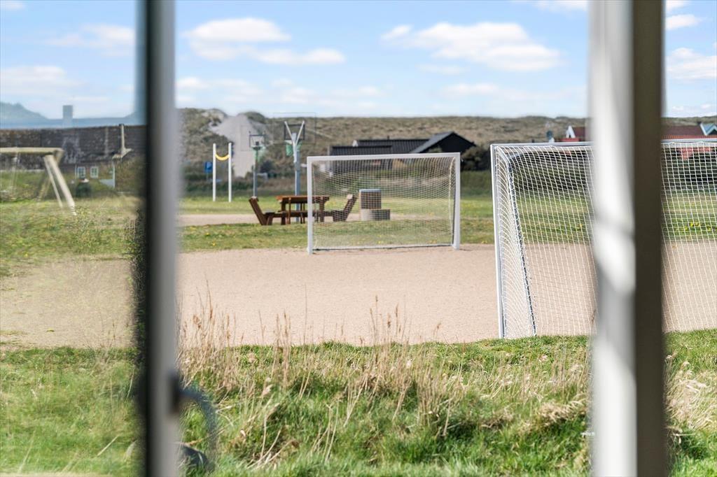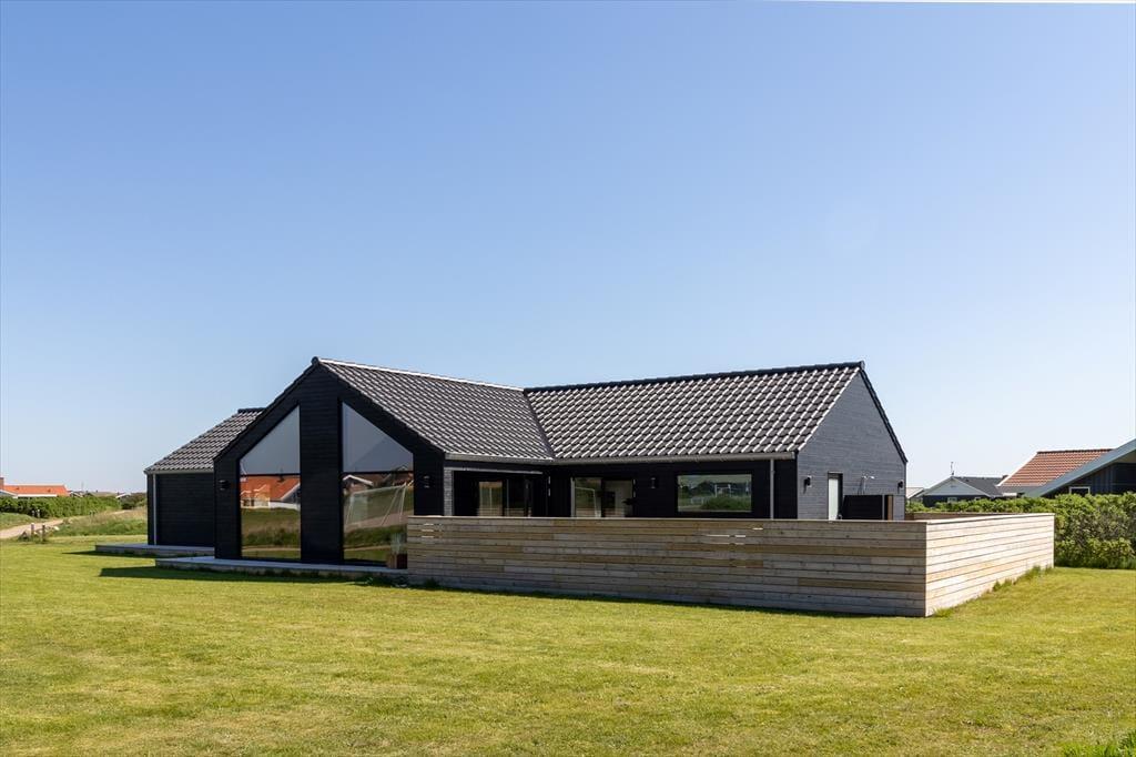 Udendørslivet omkring sommerhuset er mindst lige så tiltalende som det, der venter indenfor. Den 100 m² store terrasse er inddelt i forskellige zoner, hvor du kan vælge sol eller skygge, alt efter humør og tidspunkt på dagen. Her kan du nyde morgenkaffen i ro og mag, læse en bog i loungemøblerne eller gøre klar til grillmiddag i det fri. Og så er der selvfølgelig wellness-delen: en skøn udendørs spa, en sauna og en udebruser, der tilsammen giver den ultimative ferieluksus under åben himmel. Imens kan hunden bevæge sig trygt rundt i de rolige omgivelser, og børnene kan lege udenfor, mens de voksne nyder freden.
