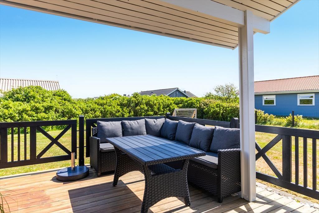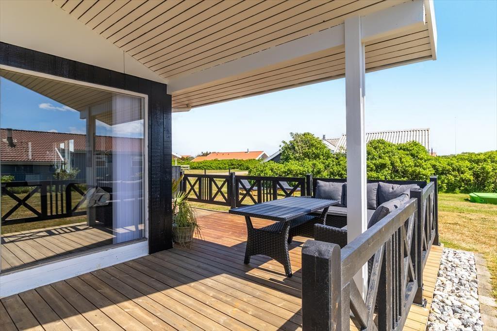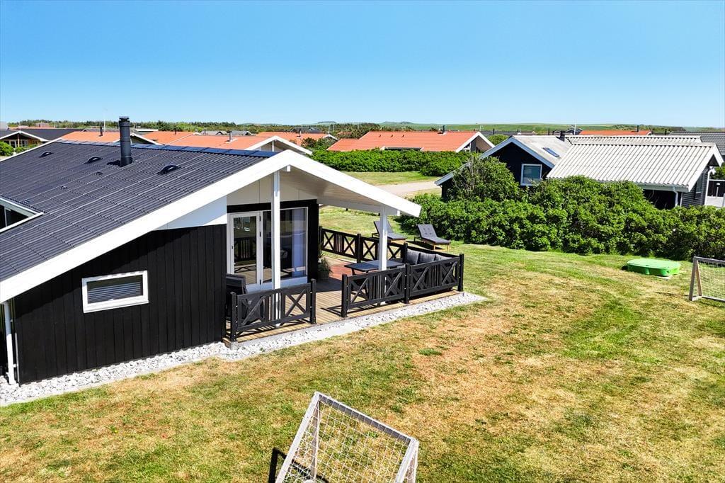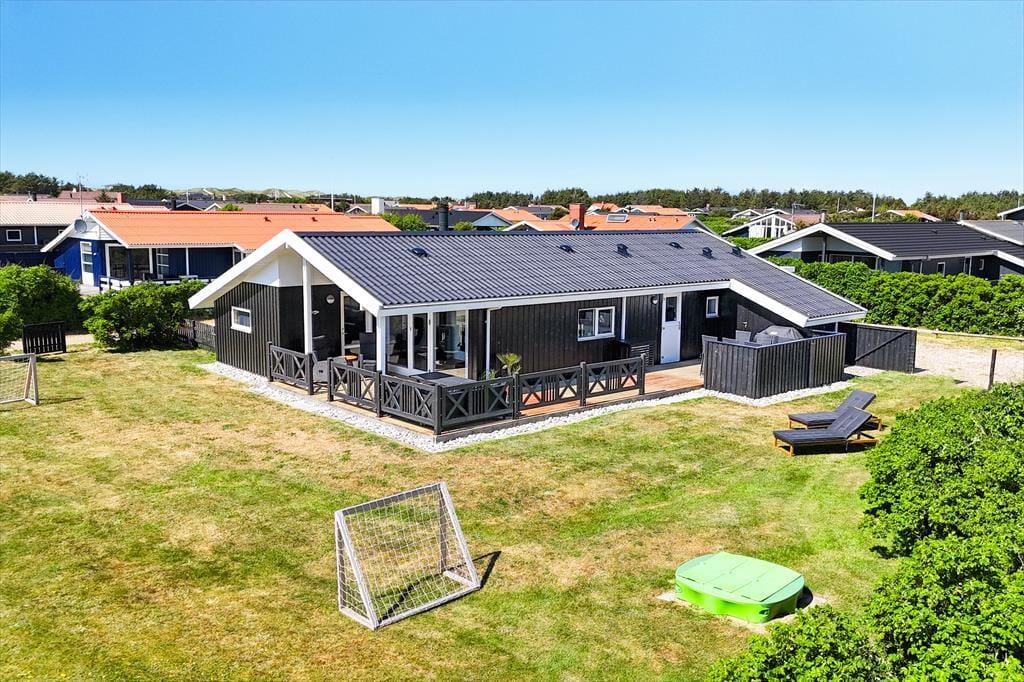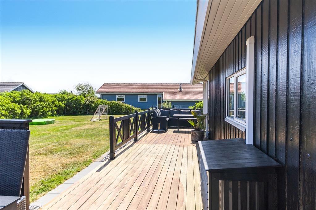 Huset ligger på en stor, åben grund med masser af plads til at nyde udelivet. Børn og hunde kan lege frit på den velplejede græsplæne, mens du selv slapper af i solen på en af terrasserne. Den sydvendte terrasse indbyder til lange sommeraftener med grillmad og hyggelige samtaler, mens du nyder udsigten til de fredfyldte omgivelser. Med nærheden til Vejlby Klit Strand er det nemt at tage en spontan tur til vandet, hvad enten det er for at bade, bygge sandslotte eller blot gå en afslappende tur langs kysten.
