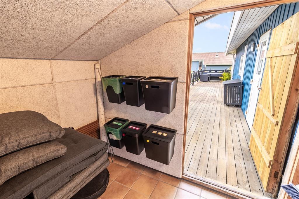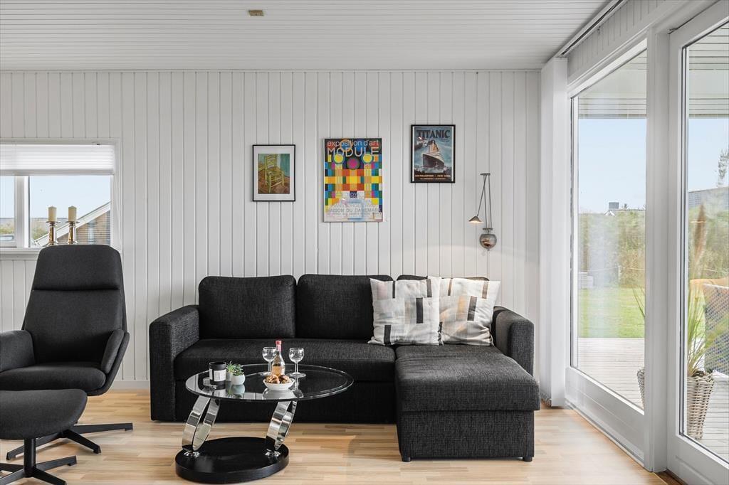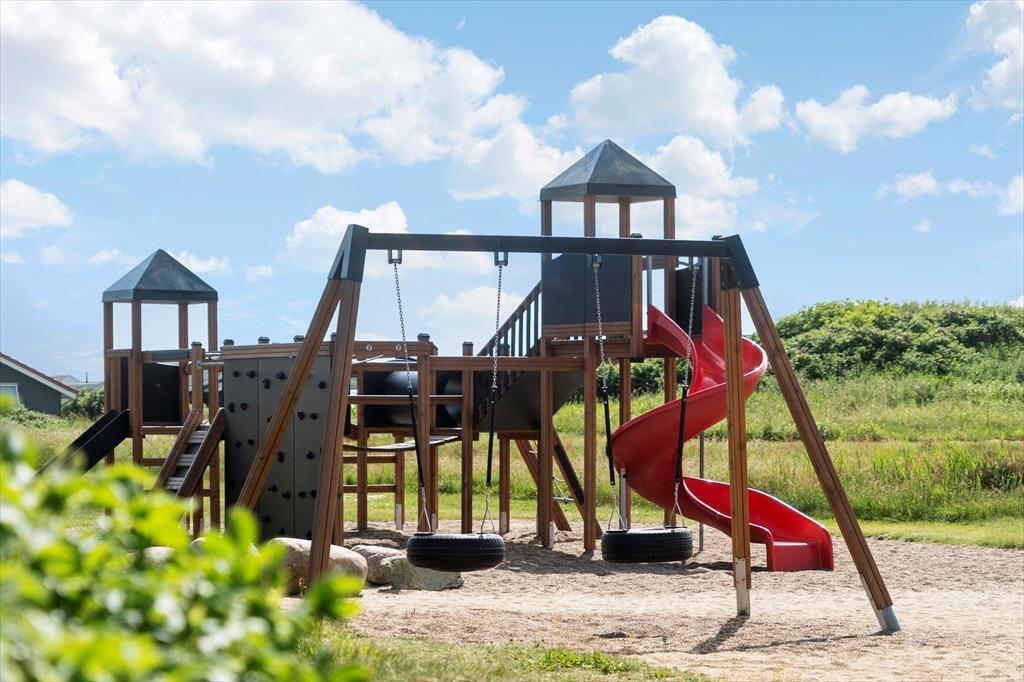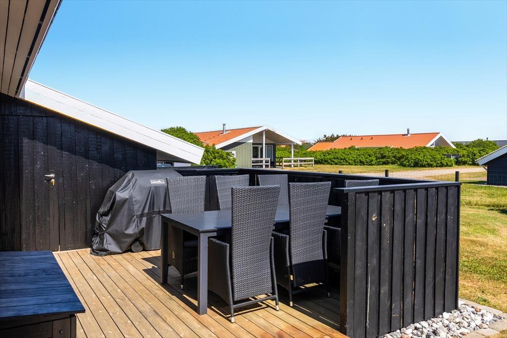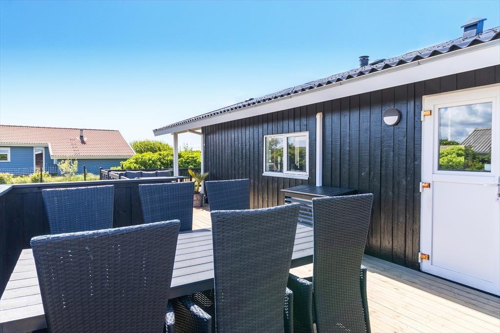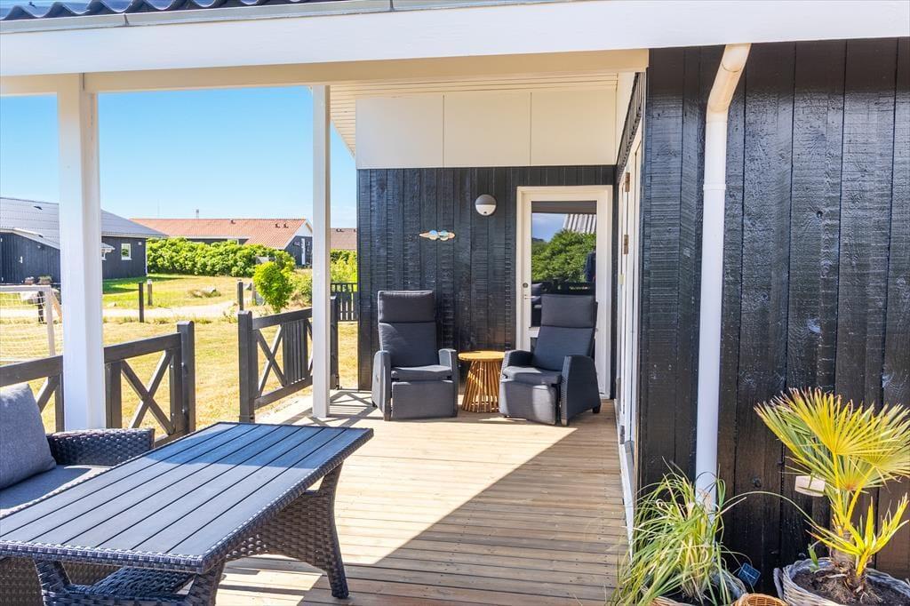 Huset ligger på en stor, åben grund med masser af plads til at nyde udelivet. Børn og hunde kan lege frit på den velplejede græsplæne, mens du selv slapper af i solen på en af terrasserne. Den sydvendte terrasse indbyder til lange sommeraftener med grillmad og hyggelige samtaler, mens du nyder udsigten til de fredfyldte omgivelser. Med nærheden til Vejlby Klit Strand er det nemt at tage en spontan tur til vandet, hvad enten det er for at bade, bygge sandslotte eller blot gå en afslappende tur langs kysten.