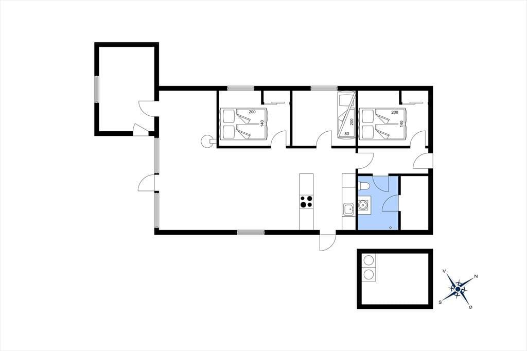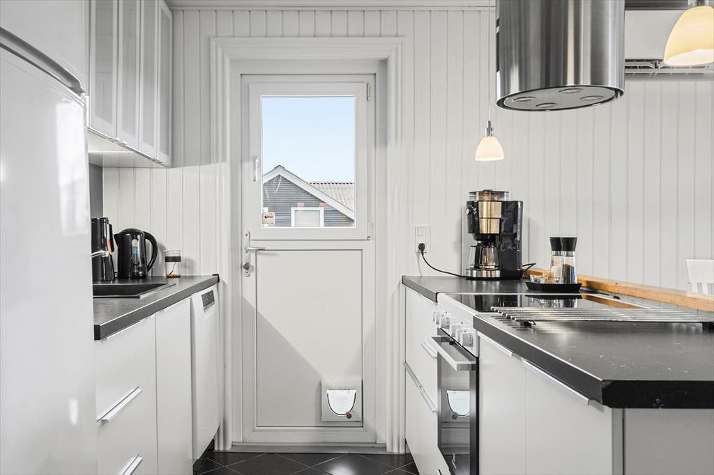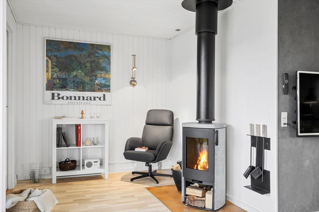 Sommerhuset byder på en lys og behagelig atmosfære, hvor det er nemt at finde sig til rette. Køkken og stue ligger i åben forbindelse, hvilket gør det oplagt at samles her til gode måltider og hyggelige stunder foran brændeovnen. Store vinduespartier lukker masser af lys ind og giver udsigt til de grønne omgivelser, mens den varme glød fra brændeovnen skaber en hyggelig stemning, når vejret er køligt. Badeværelset er blevet totalrenoveret og fremstår moderne og lækkert, mens det isolerede vaskerum gør det nemt at holde styr på hverdagens praktiske behov, selv når du er på ferie.