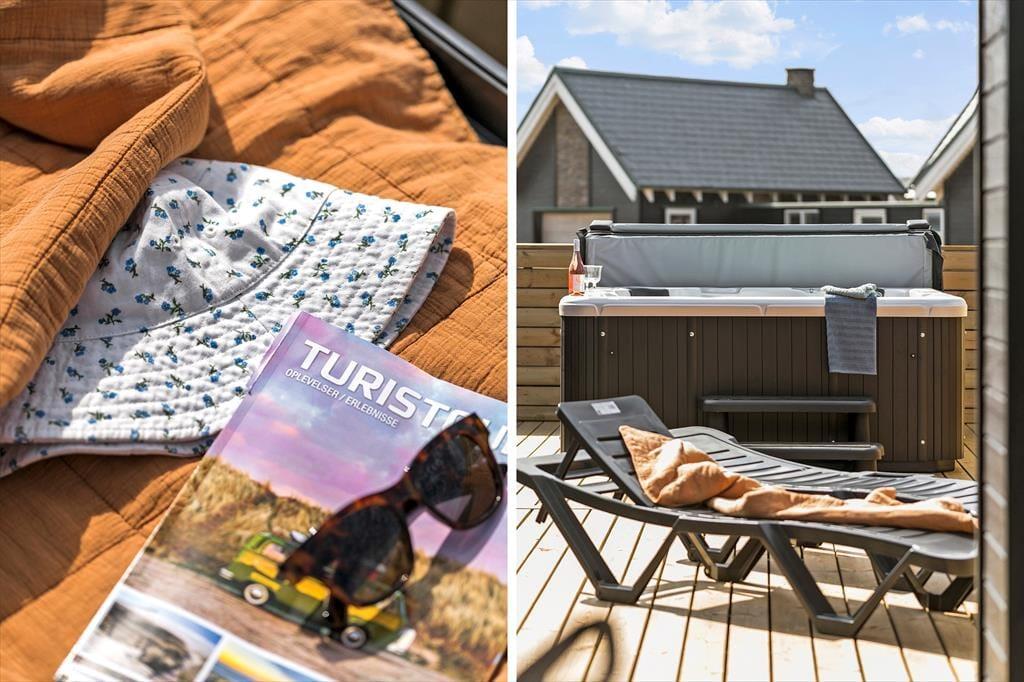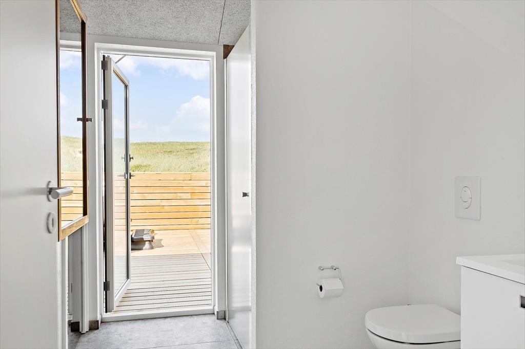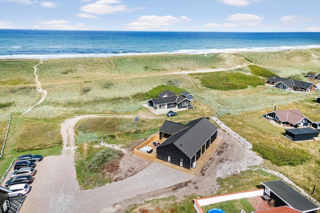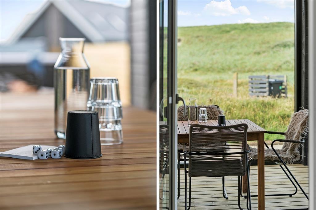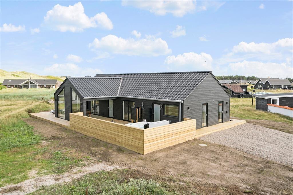Sommerhuset byder på hele 120 m² terrassemiljø, hvor både solrige og overdækkede områder giver mulighed for at vælge den perfekte plads efter vejr og humør. Her kan morgenkaffen nydes i stilhed, og om aftenen kan maden tilberedes på grillen og serveres med udsigt til klitternes gyldne farver. Efter en dag ved stranden eller på opdagelse i området kan du forkæle dig selv med en tur i det udendørs spabad – eller tage en forfriskende udebruser under åben himmel. Den smukke natur omkring huset skaber en vidunderlig ramme for afslapning, leg og hyggelige stunder i det fri.