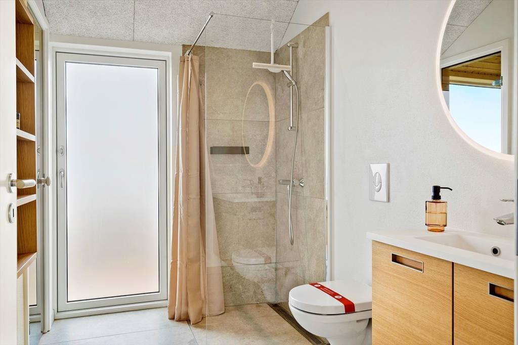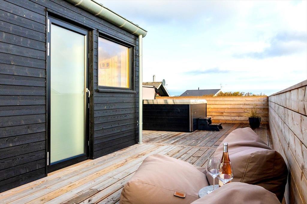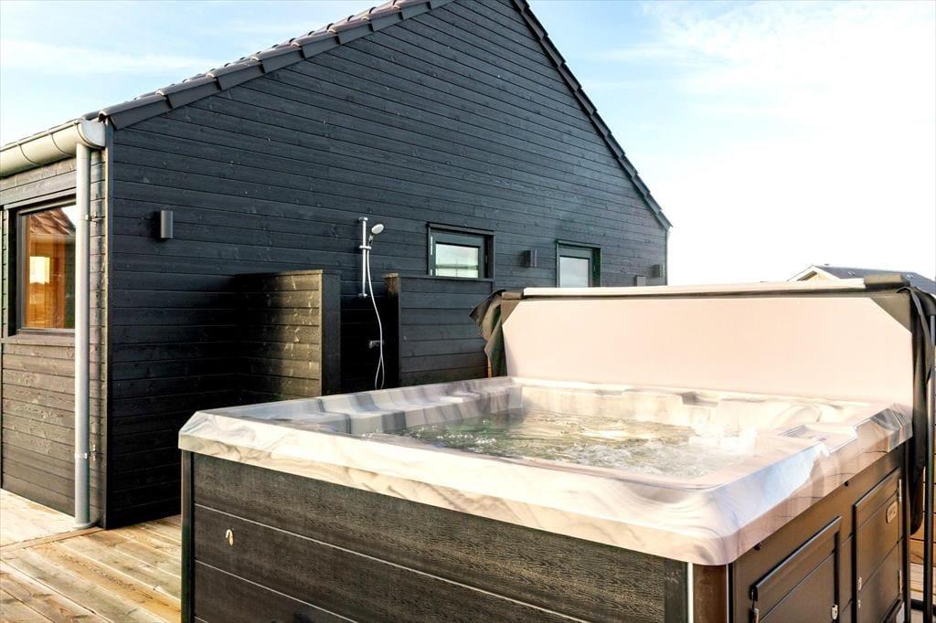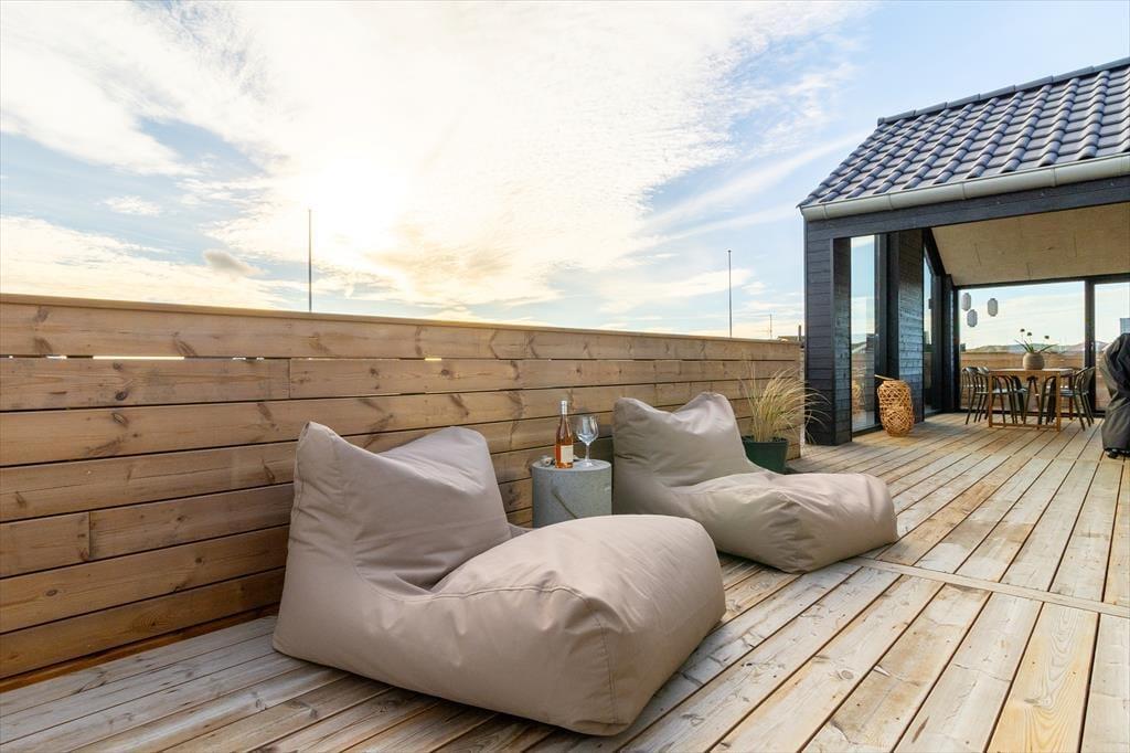 Udendørsområderne er designet til ren nydelse. Den lukkede terrasse gør det trygt for både små børn og hunde at færdes frit, mens den overdækkede terrasse med læ mod vest, syd og nord giver perfekte rammer til afslapning uanset vejret. Her finder du også et fantastisk udespa og en udebruser, hvor du kan nyde livet under åben himmel med udsigt til Ferring Sø. Sommerens grillmåltider bliver en fornøjelse her, og med solens stråler og den friske havluft bliver udendørs ophold noget helt særligt.