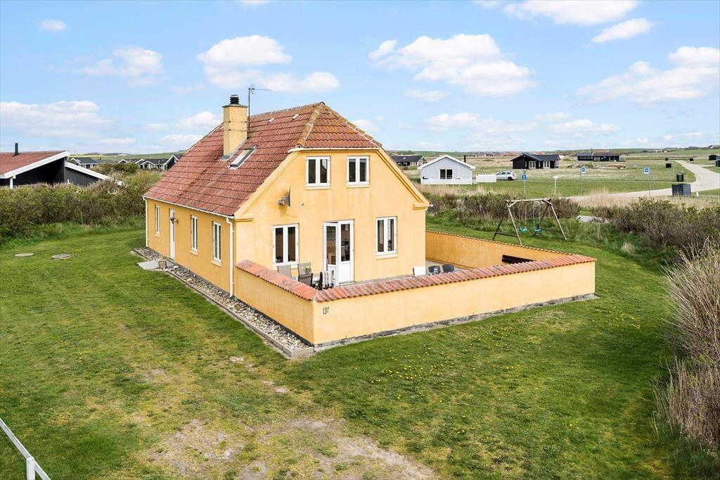 Der er lagt op til nogle herlige dage i dette fine sommerhus i Vejlby Klit. Inde bag den gule facade præsenterer rummene sig på hyggelig vis, og der er nok af kvadratmeter, så du kan sagtens invitere familien eller vennerne med på ferie.